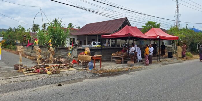 Luwu Timur, Chaneltimur.com – Umat Hindu di Desa Kertoraharjo, Kecamatan Tomoni Timur, menggelar upacara Tawur Kesanga di catus pata (perempatan agung), Rabu