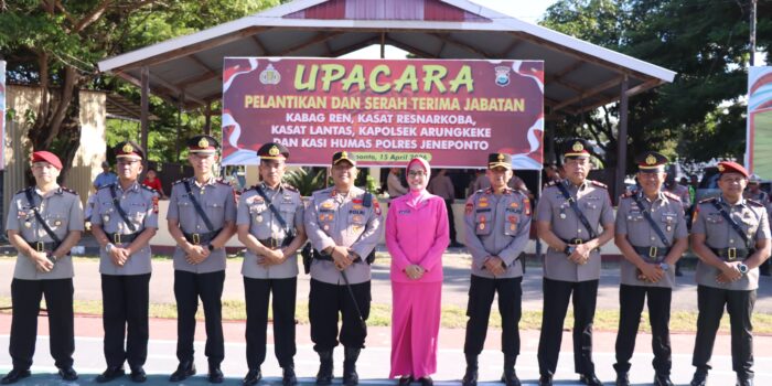 Jeneponto, Chaneltimur.com – Bertempat di halaman Mapolres Jeneponto, telah dilaksanakan upacara pelantikan dan serah terima jabatan sejumlah Pejabat Utama Polres Jeneponto. Kegiatan