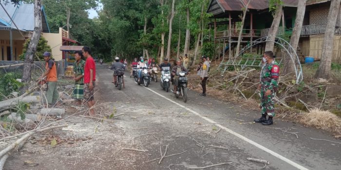 Dalam kesempatan tersebut Bhabinkamtikmas dan Babinsa serta masyarakat ikut membantu dan membersihkan guna mengantisipasi adanya kecelakaan dari jatuhnya ranting pohon sekaligus mengatur lancarnya arus lalu lintas ungkap Akp Syahrul.SH Lap : Mansur Lau
