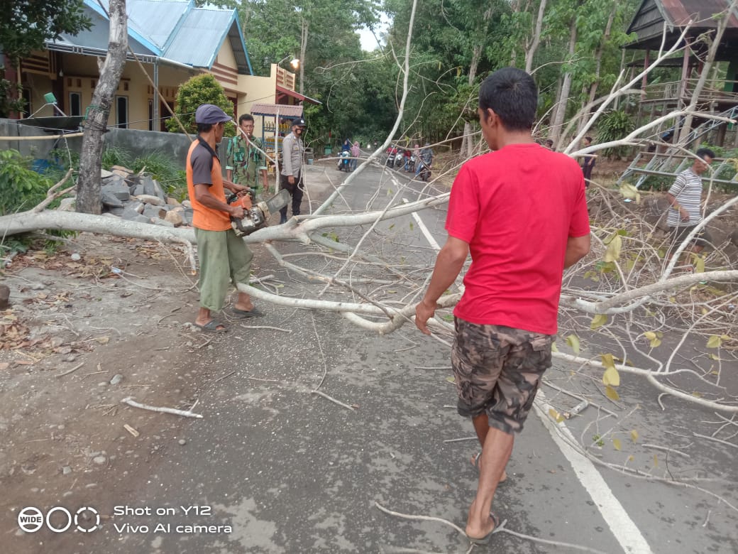 Dalam kesempatan tersebut Bhabinkamtikmas dan Babinsa serta masyarakat ikut membantu dan membersihkan guna mengantisipasi adanya kecelakaan dari jatuhnya ranting pohon sekaligus mengatur lancarnya arus lalu lintas ungkap Akp Syahrul.SH Lap : Mansur Lau