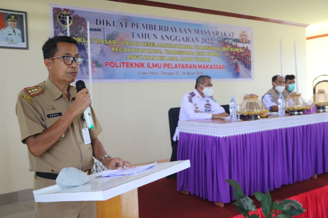 Staf Ahli Hukum dan Pemerintahan Setdakab Luwu Timur, dr. H. April yang hadir mewakili Bupati Luwu Timur mengatakan, Diklat yang ditujukan para nelayan dalam upaya memberikan ilmu pemahaman terkait keselamatan di laut.