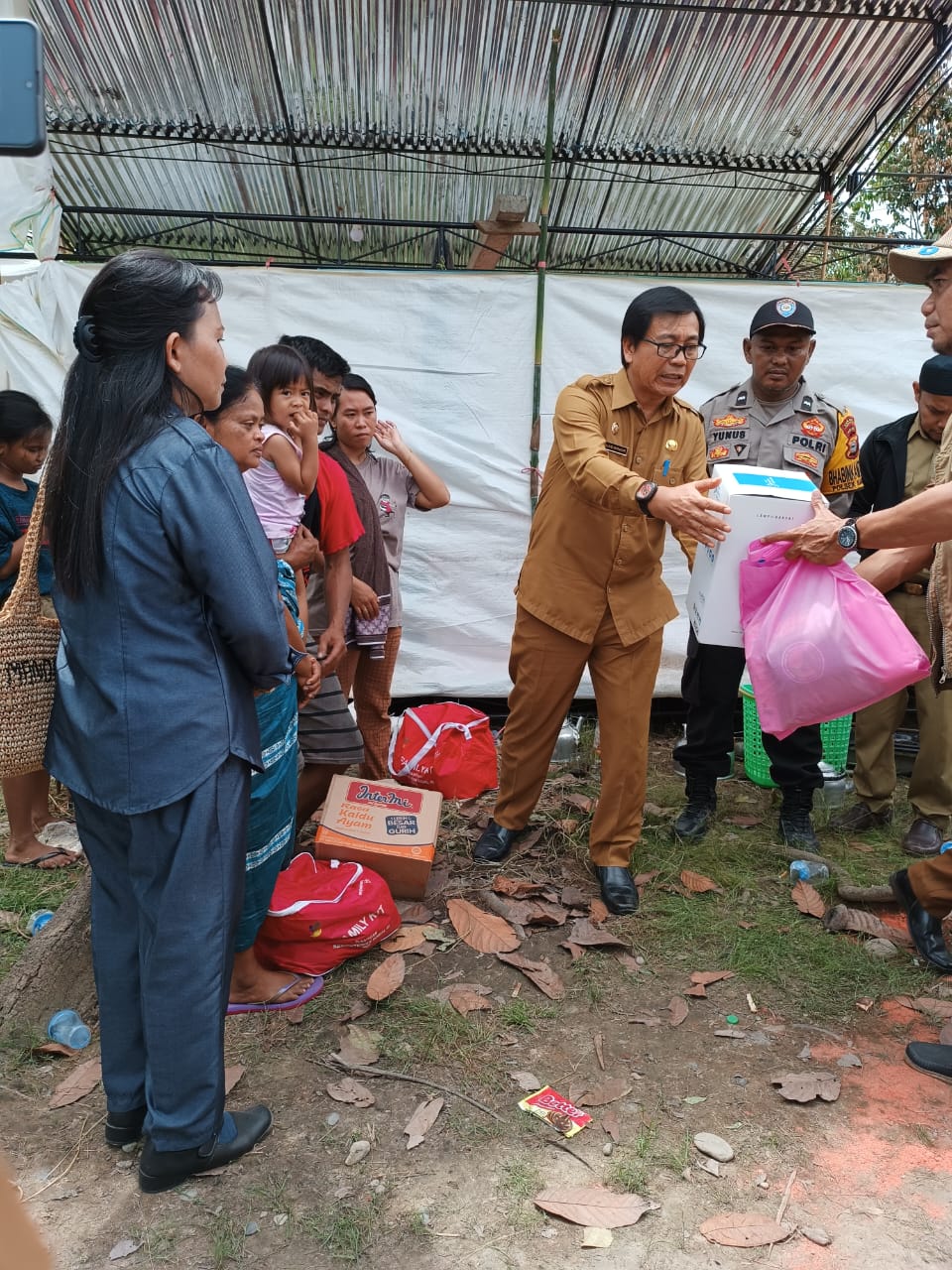“Jadi ini yang hangus satu rumah yang dihuni 3 KK. Saya harap kita semua tabah dan sabar karena setiap musibah adalah cobaan dan juga ujian untuk kita lebih dekat dengan Tuhan Yang Maha Kuasa. Bantuan yang kita berikan hari ini, kami selaku pemerintah daerah berharap bisa meringankan sedikit beban kita,” kata SM