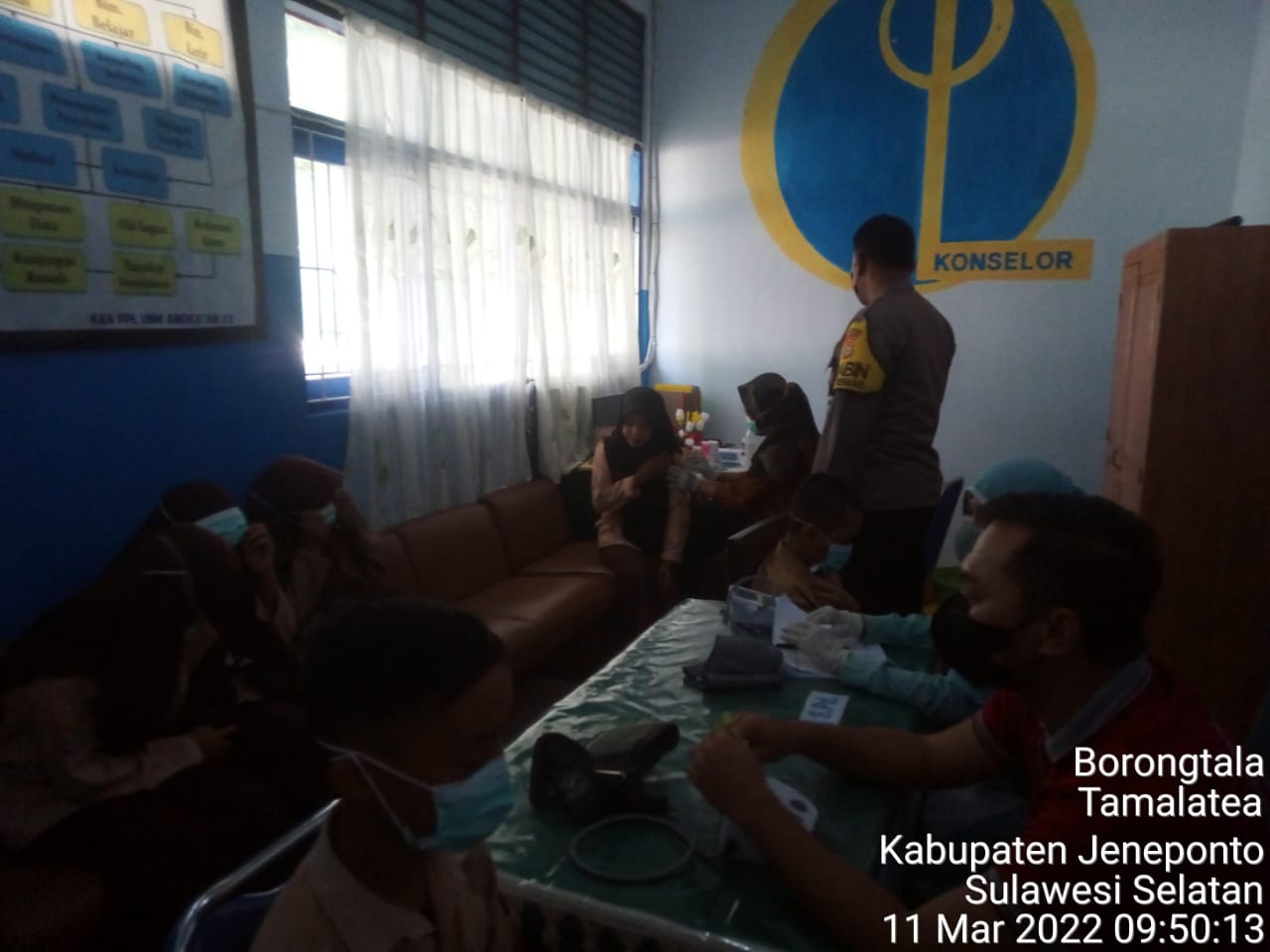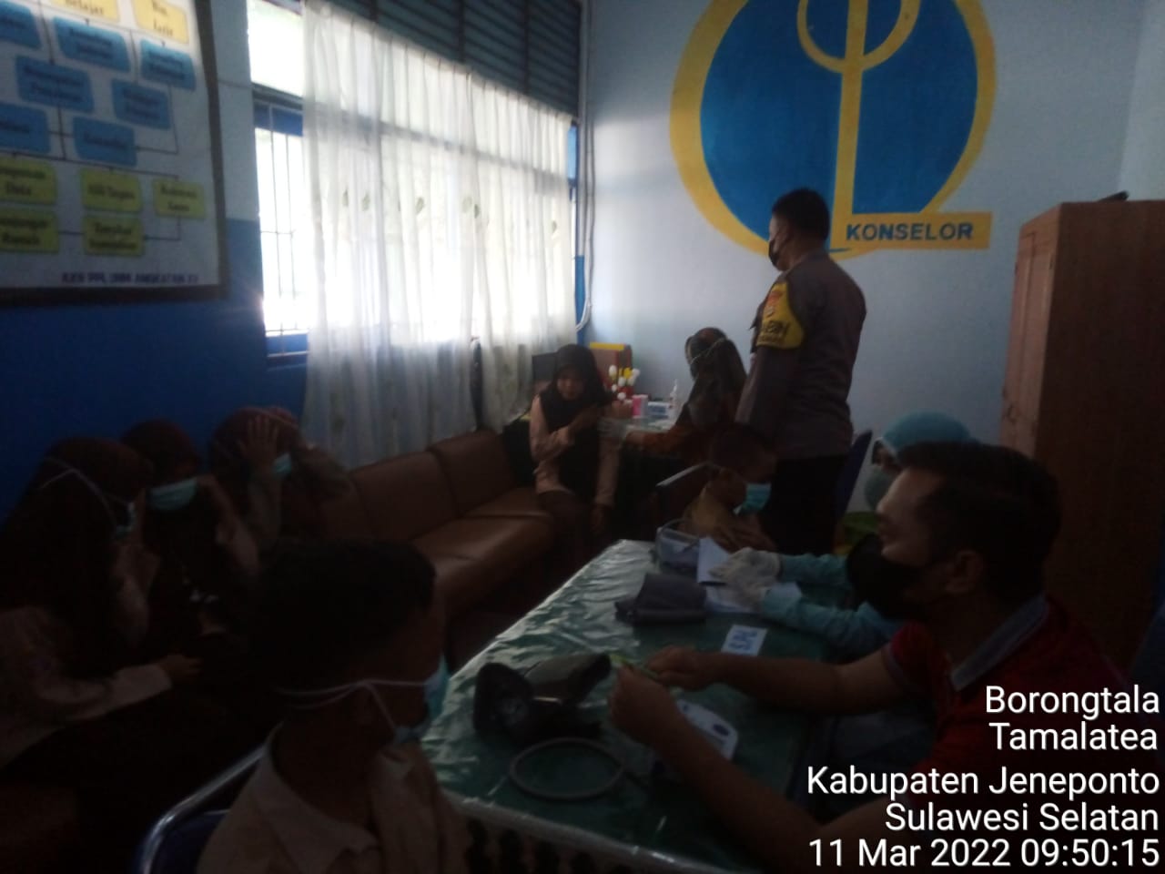 Dalam program percepatan vaksinasi di indonesia, semua jajaran kepolisian di daerah turut melaksanakan kegiatan pemantauan vaksin covid 19 di wilayah masing-masing,hal ini juga ditunjukkan oleh Aipda Abd Rahim selaku bhabhinkamtibmas turut melaksanakannya disamping itu juga menghimbau kepada siswa maupun masyarakat sekitar sekolah yang datang melaksanakan vaksin covid-19 bahwa vaksinasi ini dilaksanakan untuk meningkatkan HERD IMMUNITY (kekebalan tubuh bersama) dan vaksin yang diberikan kepada warga masyarakat sudah teruji secara klinis serta aman dan halal untuk digunakan, tetaplah selalu mematuhi protokol kesehatan dimana pun berada hal ini berguna mencegah dan memutus penyebaran virus covid 19 dalam wilayah.
