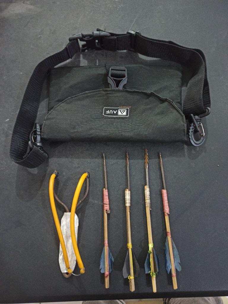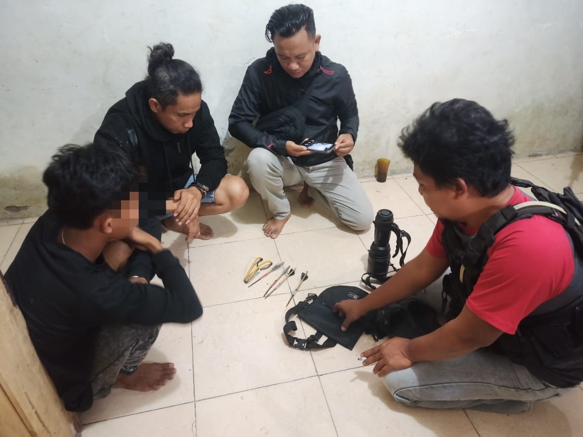 Pelaku di amankan beserta barang bukti senjata tajam 1 buah ketapel dan 4 buah anak panah atau busur, yang di gunakan pelaku melakukan tindak pidana pengancaman terhadap korban.