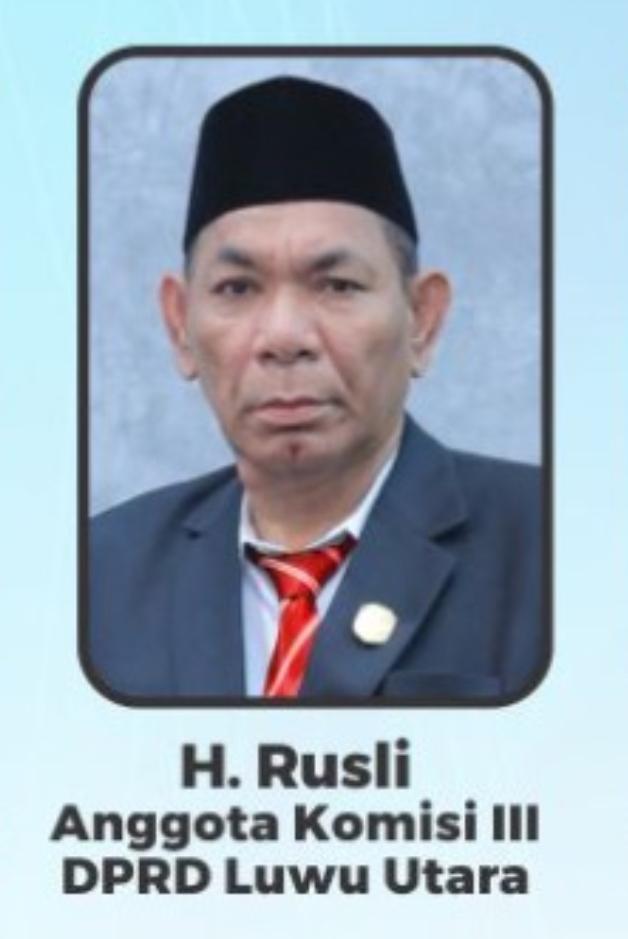 Semasa hidup H. Rusli dikenal sebagai sosok yang memiliki dedikasi tinggi dalam pengabdiannya. Tiga periode menjabat sebagai anggota DPRD Kabupaten Luwu Utara ia menunjukkan komitmen kuat dalam memperjuangkan aspirasi masyarakat.