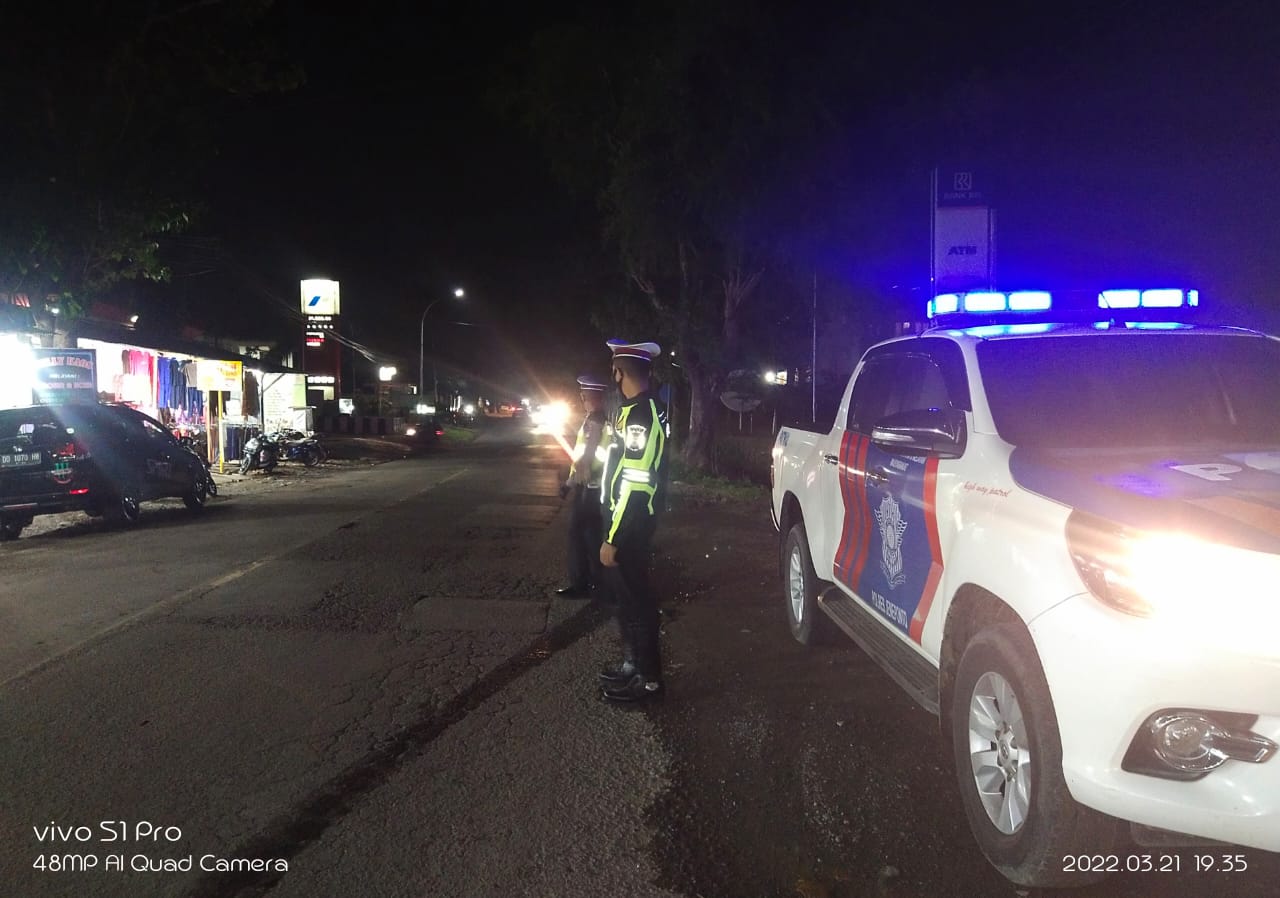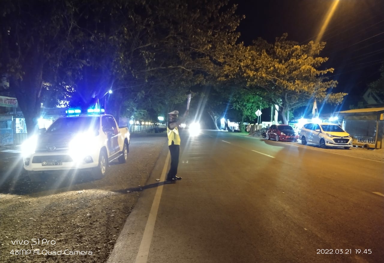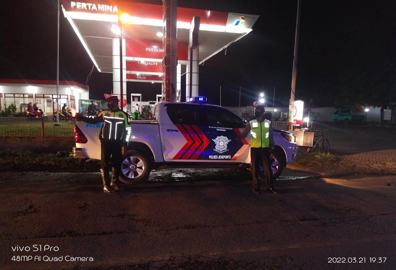 Jeneponto,Chaneltimur.Com – Menciptakan situasi keamanan dan ketertiban masyarakat (kamtibmas) di kota bontosunggu, kabupaten jeneponto agar tetap kondusif, terjaga dan lancar terlebih dari sisi kelancaran dan kenyamanan dalam berkendara di jalanan mak satuan lalu lintas polres jeneponto mengintensifkan kegiatan patroli blue light khususnya di malam hari. Senin 21/3/2022