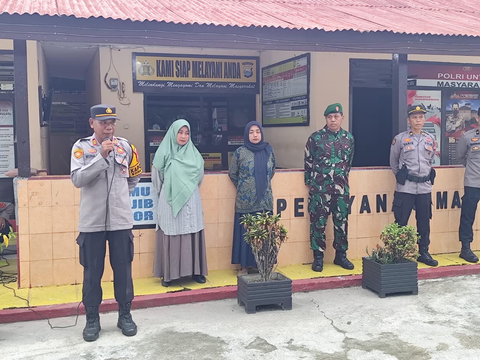 “Dalam rangka mengantisipasi potensi gangguan keamanan, kami mengimbau kepada masyarakat untuk tetap waspada dan melaporkan jika ada hal-hal menonjol kepada petugas keamanan,” ujar AKP MUHAJIR S. Pd.