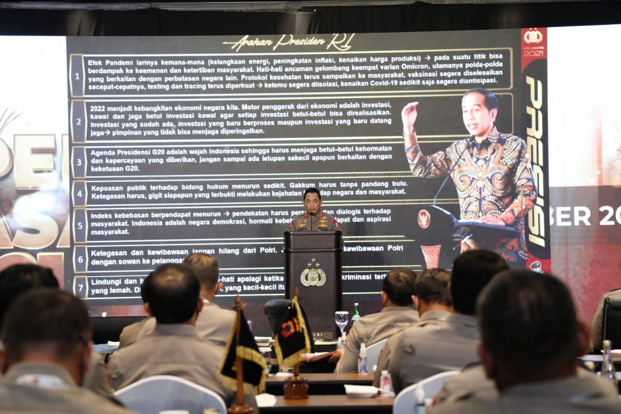 “Sehingga pada saat kita ambil keputusan atau memberikan perintah, akhirnya perintah tersebut benar. Jadi sangat penting bagaimana saat situasi sulit kita turun ke lapangan. Kemudian kita ambil langkah untuk ambil alih terhadap permasalahan yang ada. Ini menjadi penting,” ujar Kapolri.