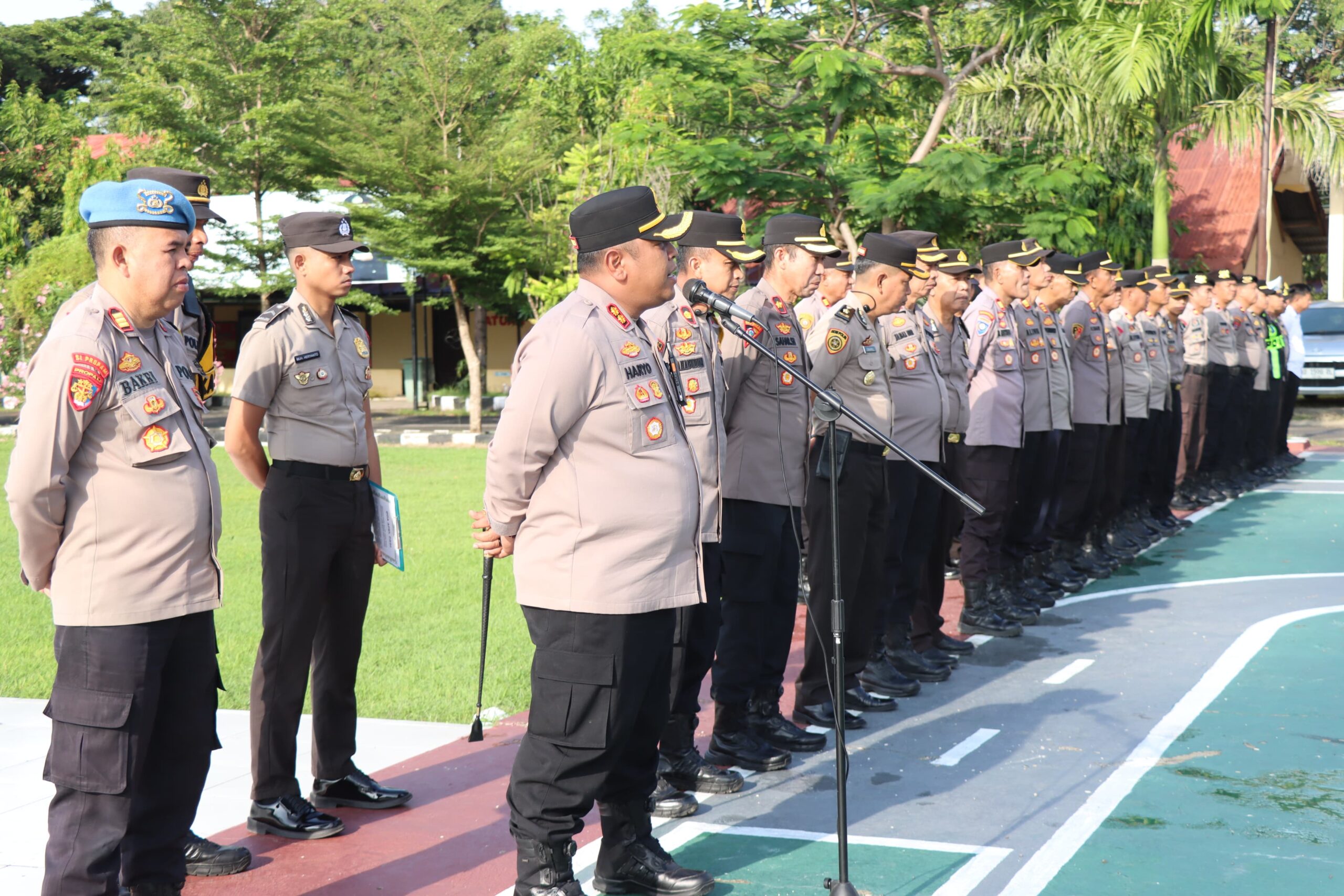 “Di momentum lebaran kali ini, mari kita saling memaafkan, kembali menjadi manusia yang fitrah. Minal aidin wal faidzin, mohon maaf lahir dan batin,” ujar AKBP Haryo Basuki di hadapan para personel yang tampak kompak mengikuti arahan.
