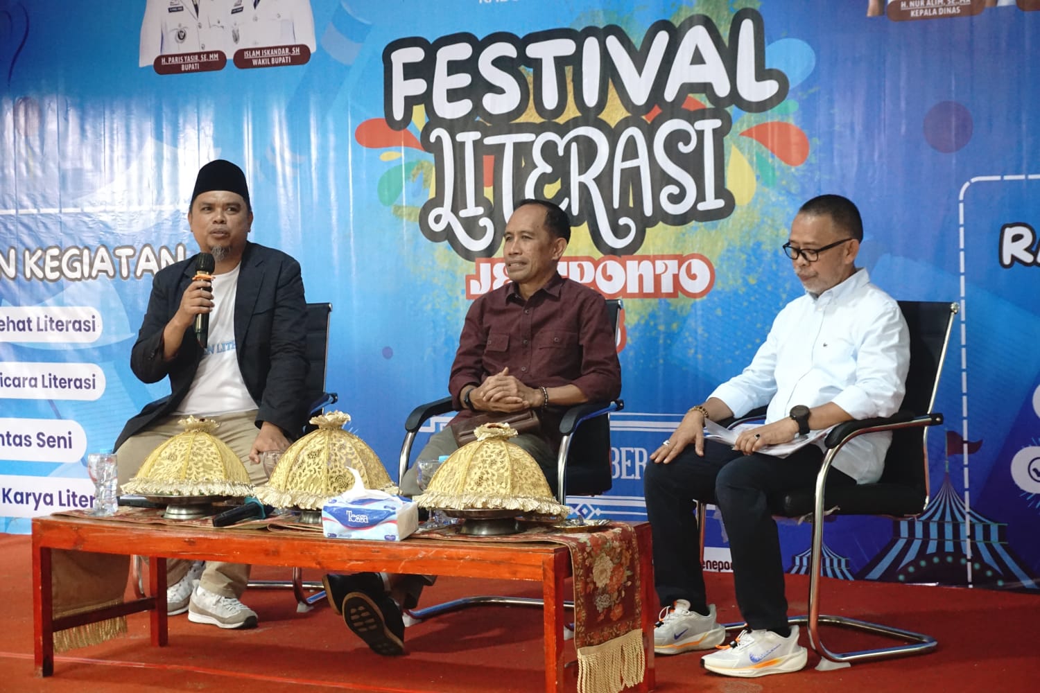 Dalam sesi diskusi yang dipandu oleh Haerullah Lodji, hadir dua narasumber utama: Dr. Bahtiar Adnan Kusuma, tokoh literasi nasional, dan Prof. Muhlis Hadrawi, akademisi dan pemerhati sastra Sulawesi Selatan.