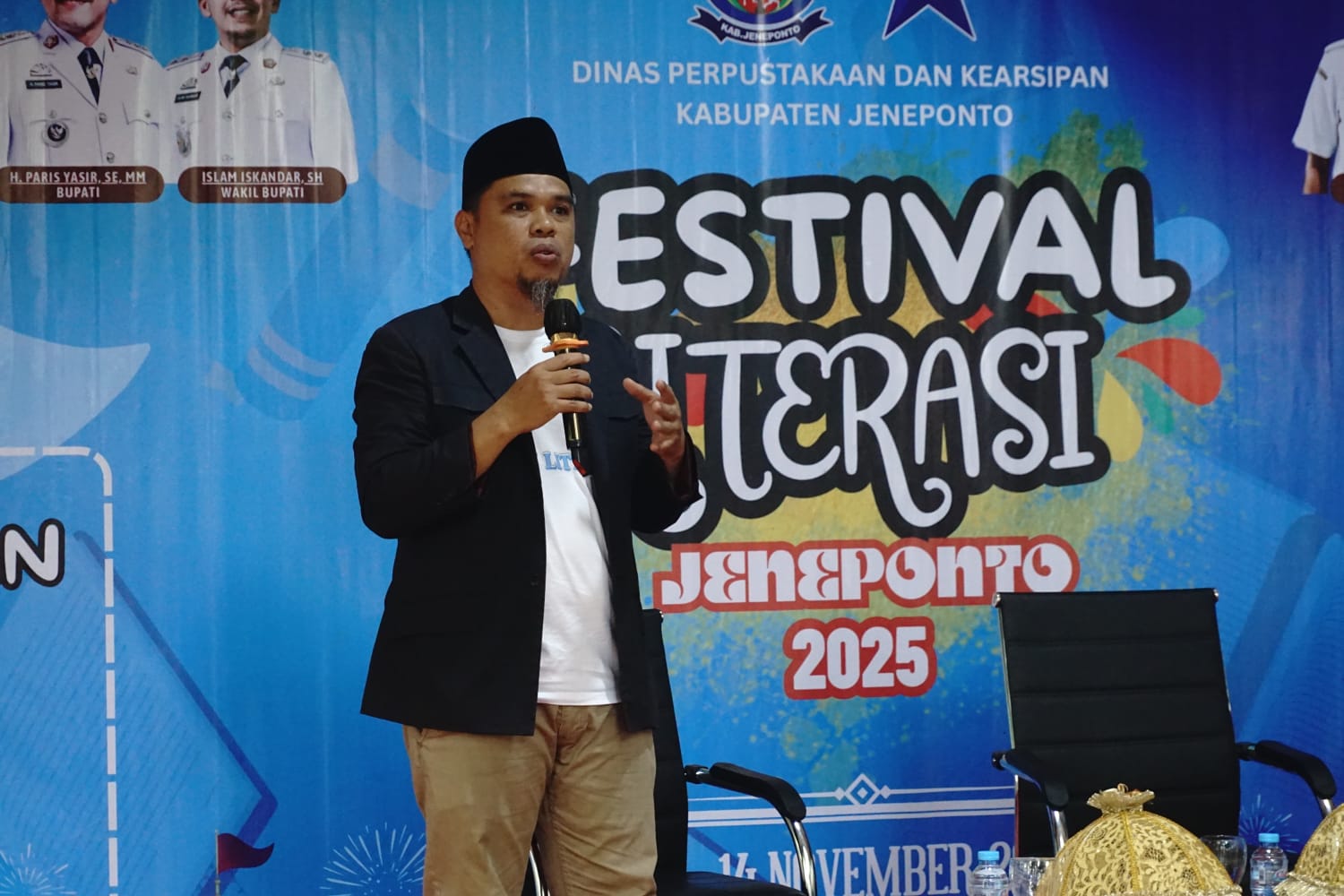 Jeneponto, Chaneltimur.com — Hari kedua Festival Literasi Jeneponto 2025 berlangsung meriah dan penuh makna di Taman HV Worang, Kamis (13/11). Setelah sehari sebelumnya dibuka secara resmi oleh Wakil Bupati Jeneponto, Islam Iskandar, S.H., M.H., kegiatan yang digagas oleh Dinas Perpustakaan dan Kearsipan Daerah Kabupaten Jeneponto ini menampilkan beragam agenda literasi yang menghidupkan semangat membaca, menulis, dan berkarya.