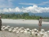 Anggota Polsek Bangkala laksanakan pengamanan dijalan poros Jeneponto – Makassar yang mengalami banjir