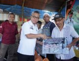 LUTIM, Chaneltimur.com – Bupati Luwu Timur, H. Budiman didampingi Kepala Dinas Pertanian dan Ketahanan Pangan (DPKP) Lutim, Amrullah menyerahkan Bantuan Pupuk Organik