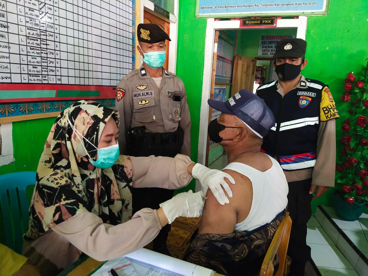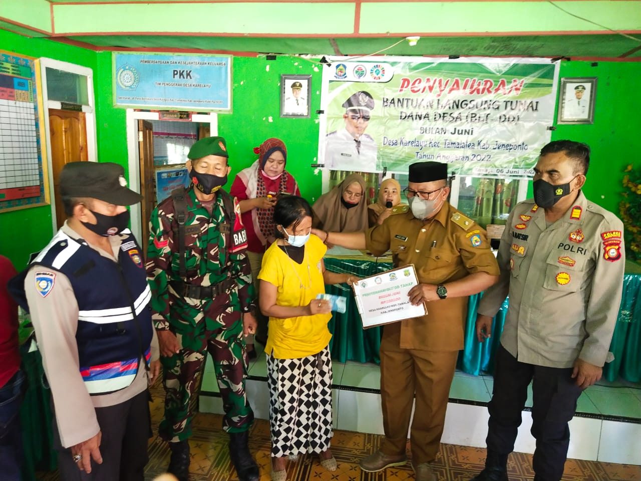 Jeneponto, Chaneltimur.Com – Bertempat di kantor desa karelayu kecamatan bontoramba kabupaten jeneponto, bhabinkamtibmas Aiptu Suwadi mendampingi Kapolsek Tamalatea Akp M.Natsir S.Sos melaksanakan giat monitoring pelaksanaan penyaluran bansos Bantuan Langsung tunai Dana Desa (BLT-DD) sekaligus pemberian vaksinasi covid-19 bagi masyarakat yang dilaksanakan oleh nakes dari puskesmas tamalatea hari senin,6/6/2022.