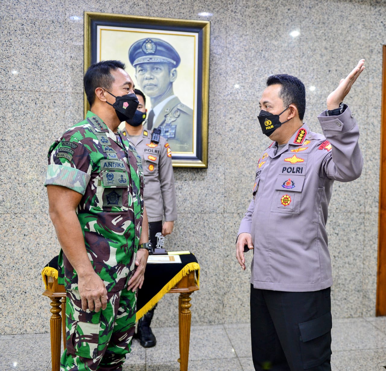 “Baru saja kami bersama pejabat utama Mabes Polri menerima Pak Panglima TNI yang baru tentunya banyak hal yang kita diskusikan bagaimana beberapa hal yang akan kita tingkatkan kedepan seperti sinergitas dan soliditas TNI-Polri,” kata Sigit.