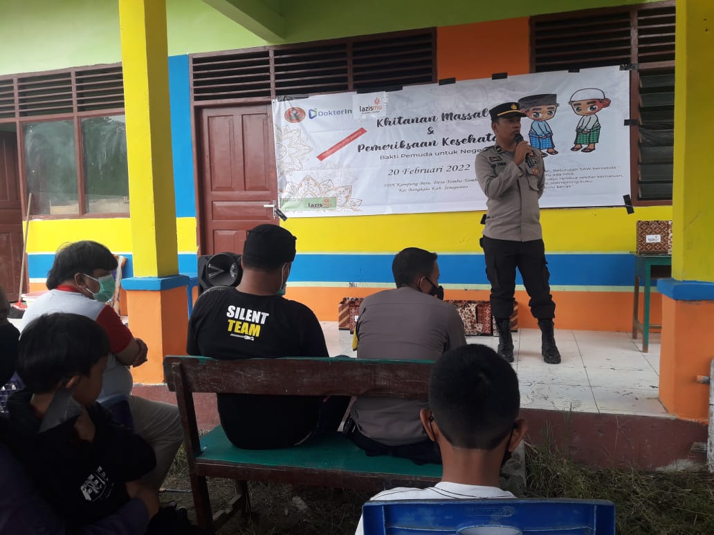 bhabinkamtibmas Aipda Abdul Muis,S,Sos memantau kegiatan khitanan massal dan pemeriksaan kesehatan gratis yang diselenggarakan pemuda muhammadiyah cab bangkala bekerjaaama dengan puskesmas bangkala dan dokter muda muhammadiyah yang di sponsori oleh LAZISMU sulsel (Lembaga Amil Zakat Infaq dan Sadekah)