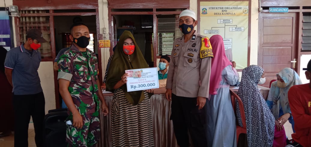 Jeneponto, Chaneltimur.Com – Bertempat di aula kantor desa kampala kecamatan arungkeke kabupaten jeneponto,bhabinkamtibmas Aiptu Sappewali, S.Sos bersama babinsa Sertu Hasbullah memantau situasi kamtibmas desa binaan kemudian memantau kegiatan penyaluran bantuan langsung tunai ( BLT ) untuk bulan januari,februari dan marer tahun 2022 desa Kampala dengan jumlah penerima 108 orang/KK dan nominal jumlah Dana Desa untuk BLT sebesar Rp. 300.000 – ( Tiga ratus ribu rupiah) untuk 1 (satu) orang dan sekaligus diterima selama 3 (tiga) bulan sebesar Rp. 900.000 (sembilan ratus ribu rupiah) perpenerima,bantuan tersebut merupakan bantuan kepada masyarakat kurang mampu yang terdampak covid 19 dan setiap penerima diadakan pengecekan kartu vaksin 1,2 dan 3 (booster) dan apabila belum segera dilaksanakan vaksin oleh nakes dari puskesmas arungkeke kemudian baru dapat diberikan dana BLT tersebut.Jum’at,22/4/2022.
