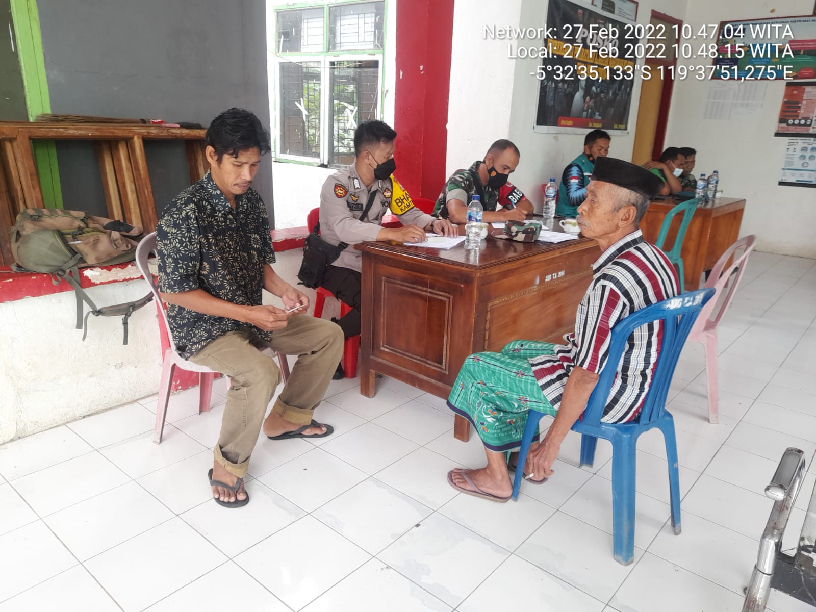Jeneponto,Chaneltimur.Com – Bertempat di kantor desa kapita kec bangkala, kab jeneponto, bhabinkamtibmas Aipda Irwan Abbas bersama babinsa Serda Tamrin melaksanakan sambang ke rumah warga dan memantau kegiatan pemberian vaksinasi covid-19 yang dilaksanakan oleh tim vaksinator dari polikes koramil.