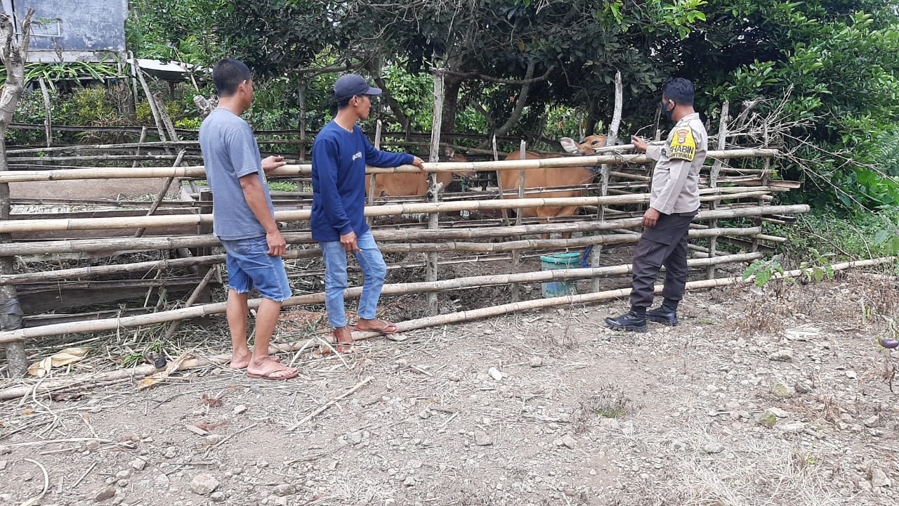 Dengan hal tersebut Bripka Ahmadi menyambangi warga di desa binaanya yang memiliki hewan ternak sapi dan dengan menyampaikan bahwa adanya penyakit terhadap hewan ternak yang disebut penyakit mulut dan kuku (PMK), serta menyampaikannya agar pemilik memperhatikan dan melihat gejala seperti cairan atau luka yang terdapat pada lidah, gusi, hidung dan teracak/kuku hewan yang terinfeksi juga hewan tidak mampu berjalan (pincang), serta keluarnya air liur berlebihan dan hilang nafsu makan pada hewan ternak, kebersihan kandang ternak juga wajib diperhatikan dalam hal ini guna meminimalisir merebaknya virus PMK.