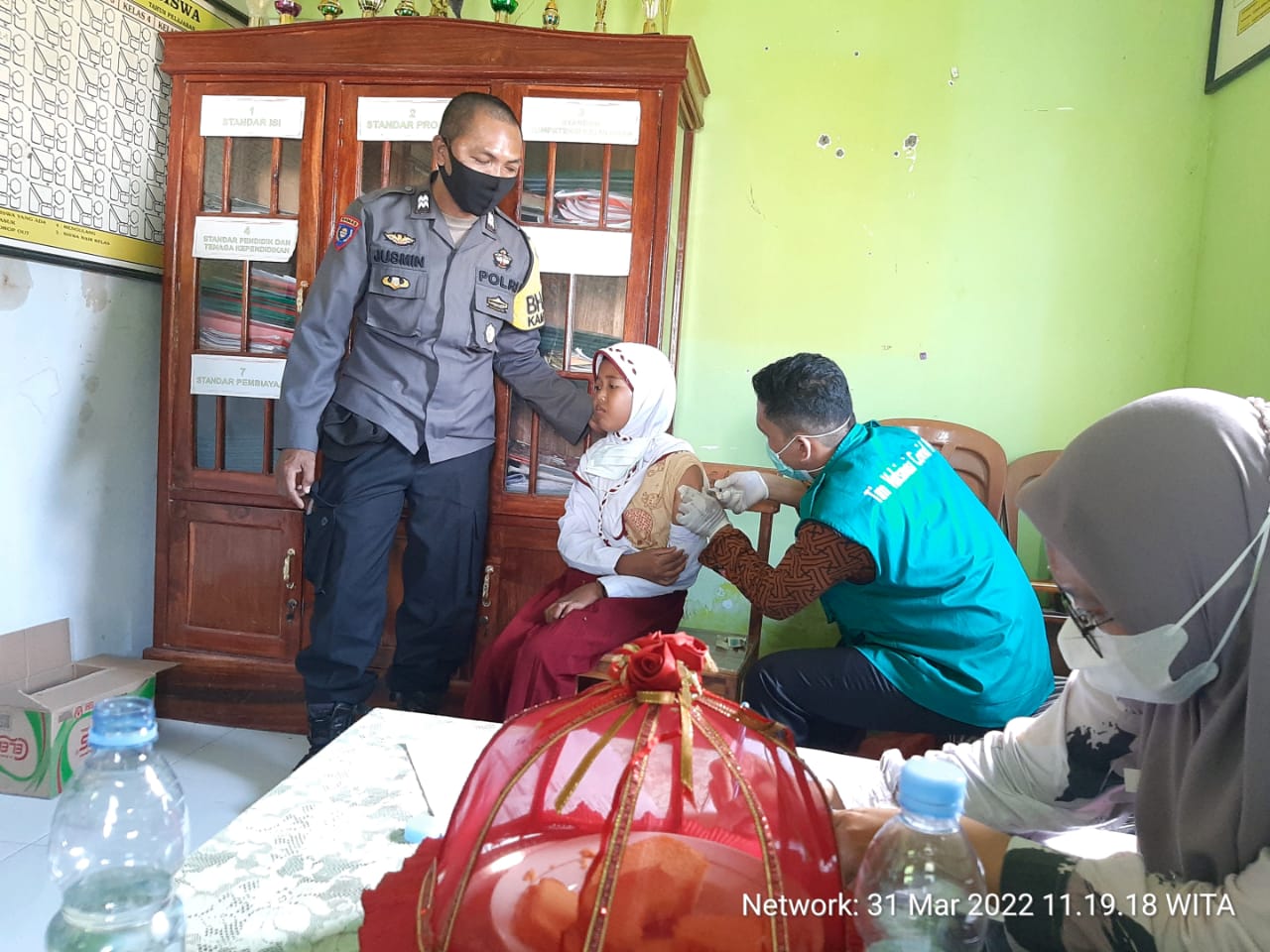Dalam rangka minimalisir penyebaran covid-19 dan mendukung percepatan program vaksinasi nasional, bhabinkamtibmas polsek tamalatea melaksanakan sambang menjalin silaturahmi dalam bentuk mengawasi dan mengawal jalannya pelaksanaan vaksinasi covid-19 bagi semua kelompok usia tidak terkecuali bagi anak-anak.