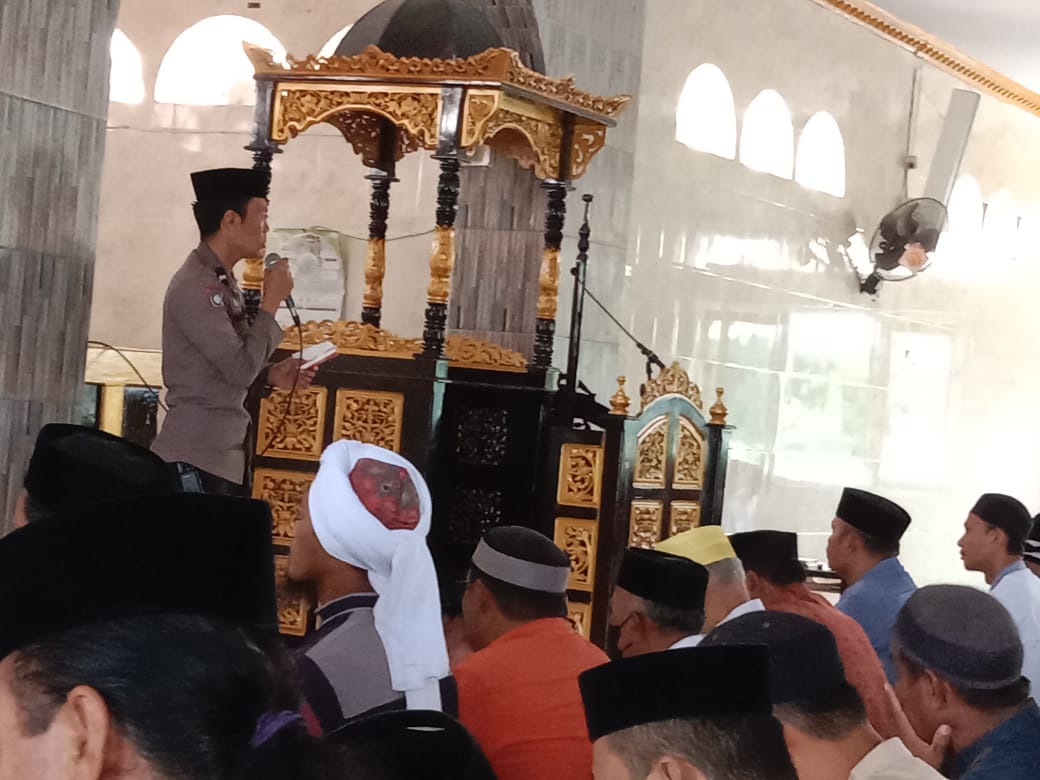 Setelah pelaksanaan shalat jumat, bhabinkamtibmas Aiptu A.Pangeran menyampaikan pesan-pesan kamtibmas seperti mengharapkan masyarakat untuk senantiasa secara bersama-sama menciptakan situasi kamtibmas yang kondusif dan mengaktifkan poskamling (ronda malam) dalam menjaga wilayah dari orang-orang yang akan berbuat jahat/kriminal