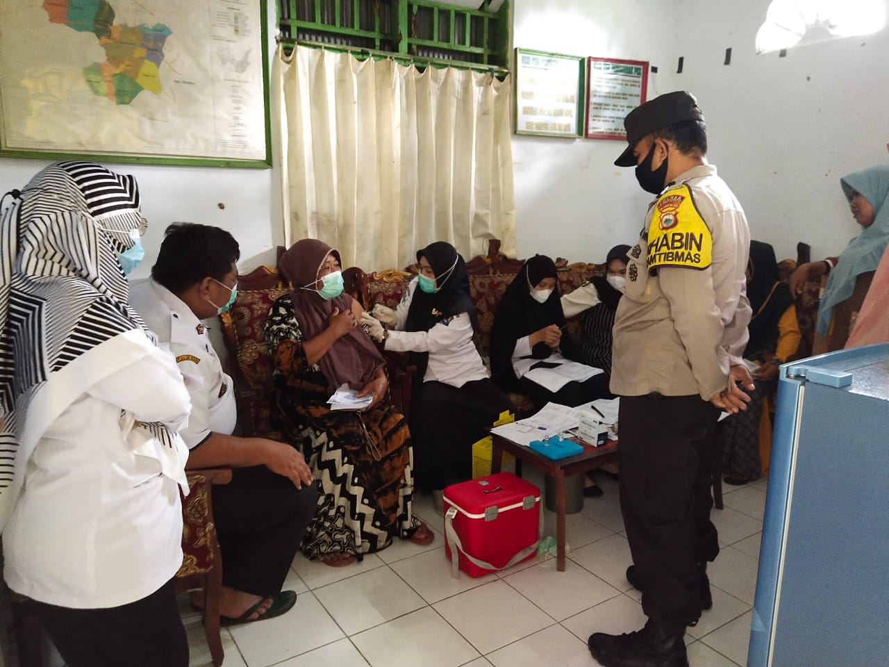 Jeneponto, Chaneltimur.Com – Bhabinkamtibmas Aiptu Suwadi melaksanakan giat monitoring penyaluran bantuan dana sembako dan vaksin covid-19, Sebagai bentuk dukungan untuk pemerintah dalam hal percepatan vaksinasi di Indonesia, penyaluran bantuan sosial bagi masyarakat juga di laksanakan pemberian suntik vaksin bagi penerima bansos, Rabu, 20 April 2022 bertempat di kantor kelurahan manjangloe kecamatan tamalatea kabupaten jeneponto.