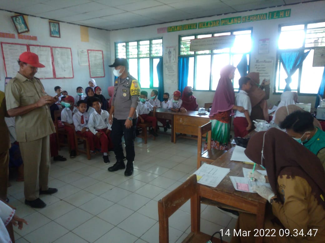 Jeneponto,Chaneltimur.Com – Berlokasi di SD cambalangkasa desa bungungloe, bhabinkamtibmas Aiptu Muh Safri sambang ke wilayah binaan sekaligus memantau pelaksanaan vaksinasi massal bagi siswa SD cambalangkasa desa bungungloe Senin 14/3/2022.