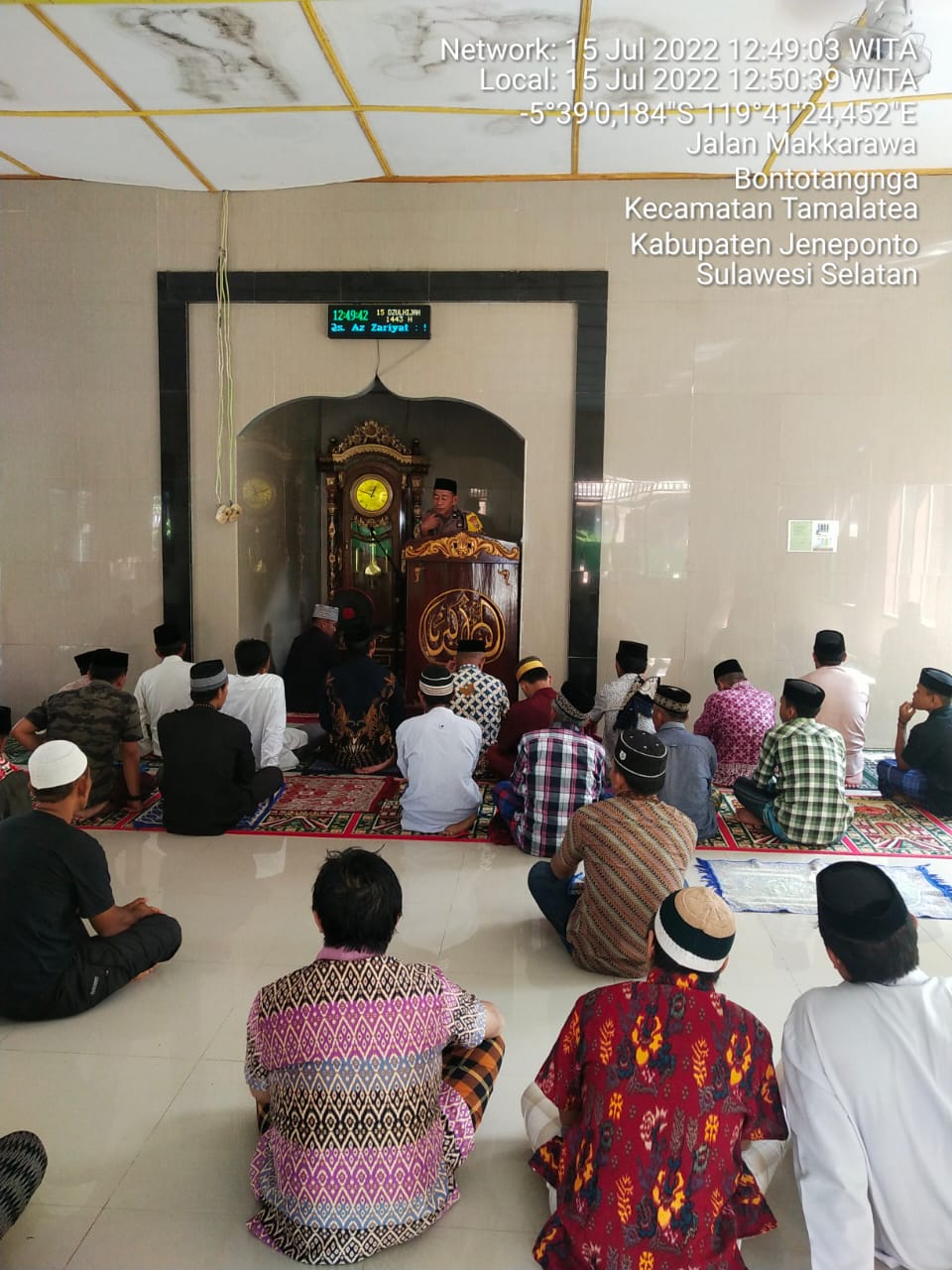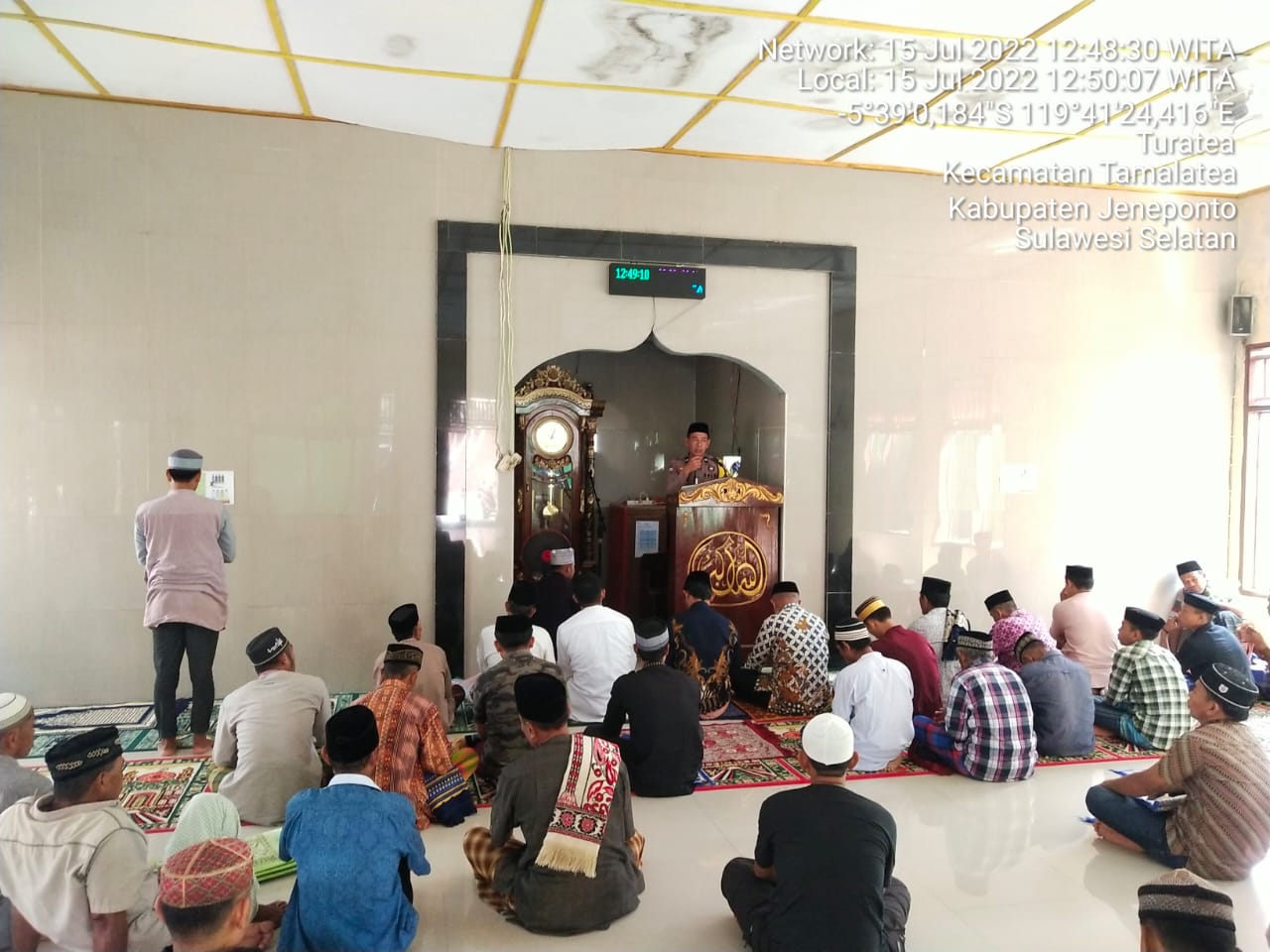 Jeneponto, Chaneltimur.com – Sebagai wujud pendekatan diri dari sisi keagamaan, bhabinkamtibmas Aiptu Budiman menjalankan rutinitas di hari Jum’at yakni safari Salat Jumat yang kali ini mengunjungi Masjid Nurul Jihad dusun rappo-rappo jawaya desa turatea kecamatan tamalatea kabupaten jeneponto. Jum’at/15/7/2022.