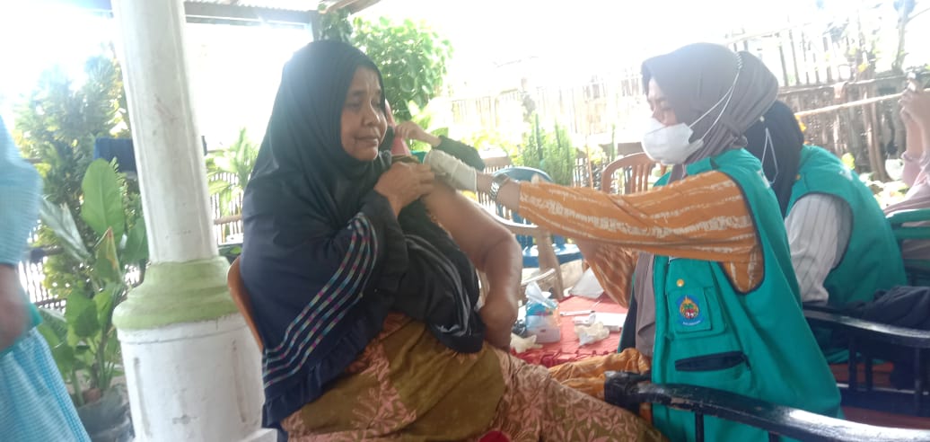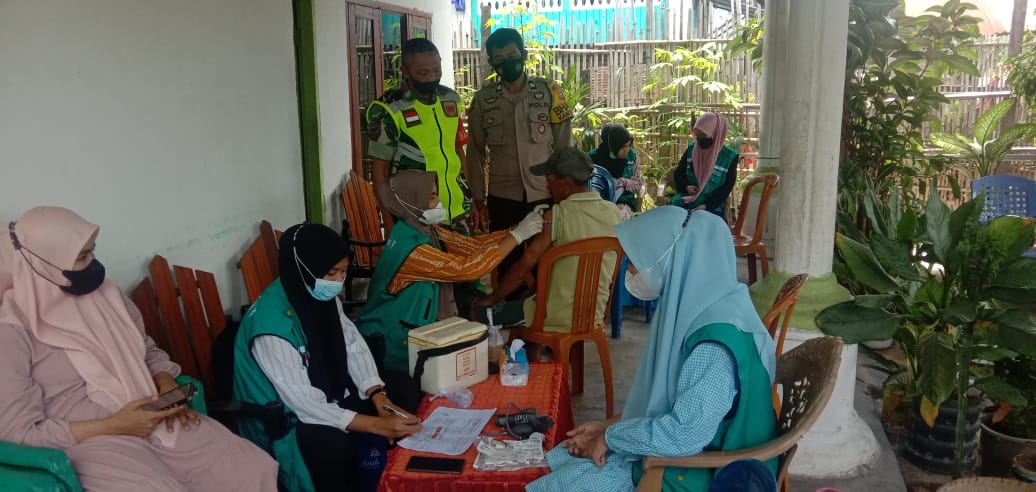 bhabinkamtibmas Aiptu Sappewali,S.Sos dan babinsa Sertu Bochari memantau pelaksanaan vaksinasi dalam rangka percepatan pencapaian vaksin dan bertindak sebagai tim vaksinator dari puskesmas arungkeke kab jeneponto.