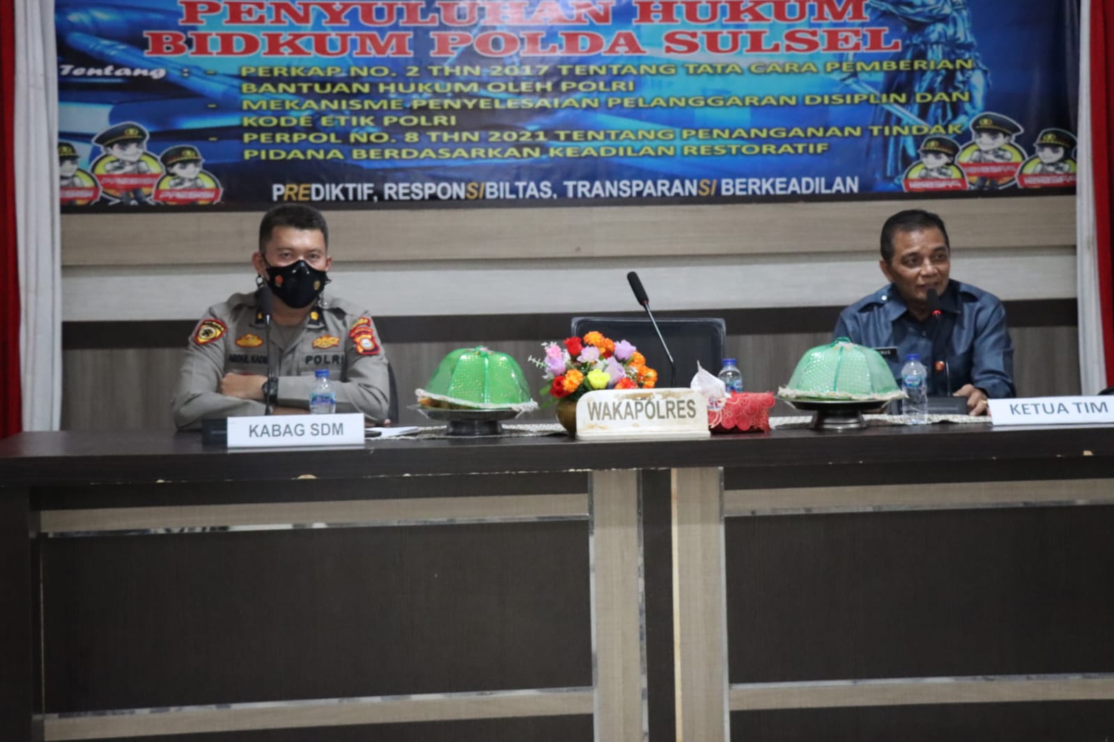 Untuk meningkatkan pengetahuan tentang hukum,polres jeneponto menyelenggarakan kegiatan penyuluhan hukum oleh bid hukum polda sulsel yang di pimpin oleh Kasubbid Sunluhkum Yunus SH,MH (Pembina TK.I)