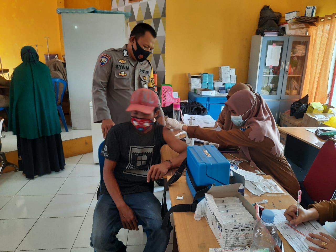 Disela kegiatan pelaksanaan pemberian vaksinasi ini, Bripka Syamsuddin turut menyampaikan pesan-pesan kamtibmas kepada warga masyarakat untuk selalu disiplin mematuhi protokol kesehatan dengan membiasakan diri mencuci tangan dengan sabun dan air mengalir,menjaga jarak, menggunakan masker saat beraktifitas,mengurangi mobilisasi dan menghindari kerumunan orang guna memutus rantai penyebaran virus covid-19.tutupnya ” ( Mansur Lau )