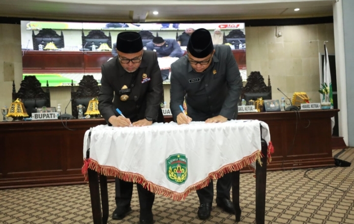 LUTIM, Chaneltimur.com – Bupati Luwu Timur, H. Budiman menghadiri Rapat Paripurna dalam Rangka Persetujuan Bersama dan Pendapat Akhir Kepala Daerah Terhadap Ranperda Pertanggungjawaban Pelaksanaan APBD TA. 2023 sekaligus Penyerahan Rancangan KUA & PPAS TA. 2025 yang berlangsung di Ruang Rapat Paripurna DPRD Lutim, Senin (15/07/2024).