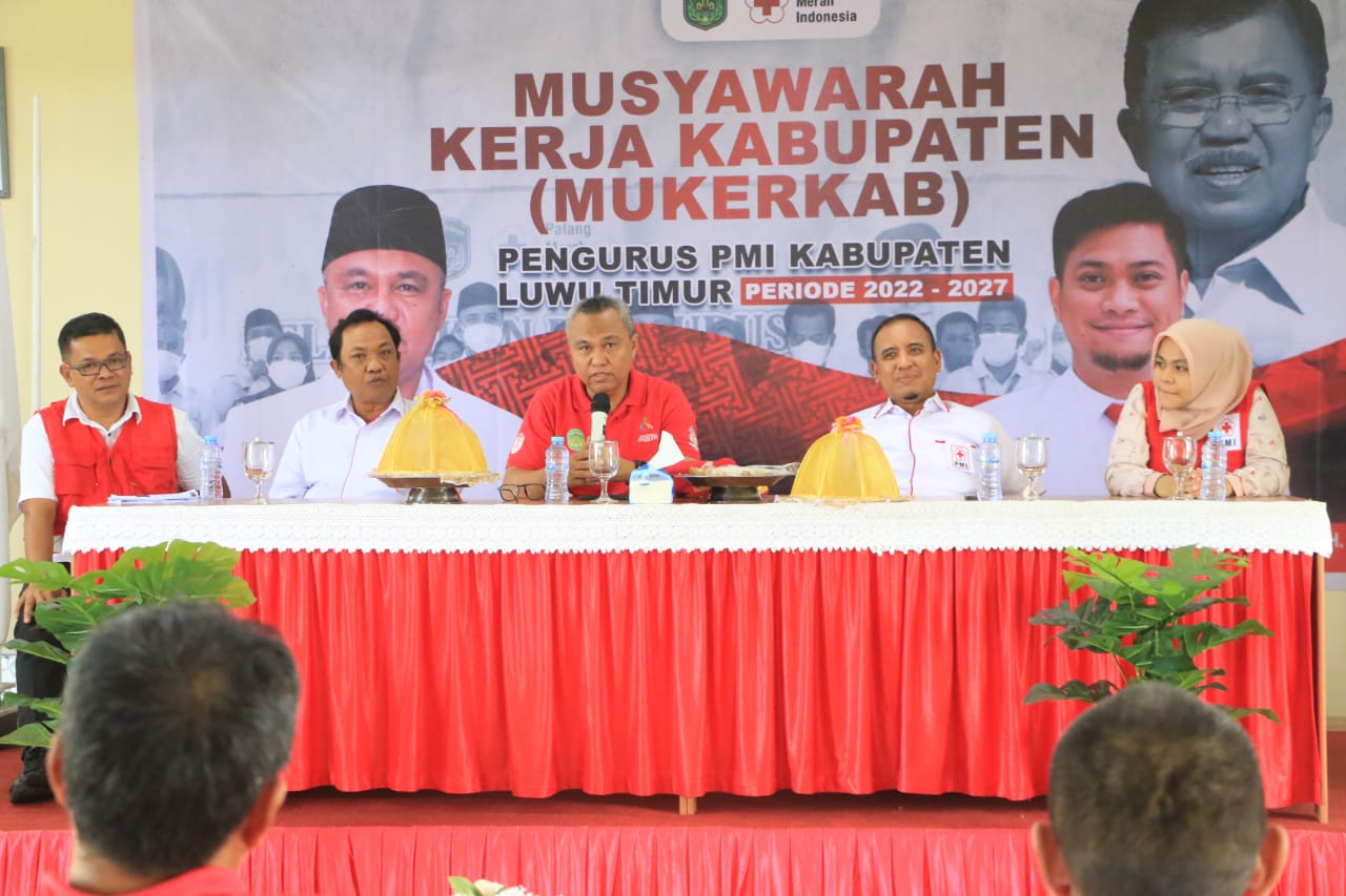 LUTIM, Chaneltimur.com – Bupati Luwu Timur, H. Budiman, menghadiri sekaligus menutup Musyawarah Kerja Kabupaten (Mukerkab) pengurus PMI Kabupaten Luwu Timur Periode 2022-2027 di Hotel I Lagaligo Malili, Selasa (26/07/2022).