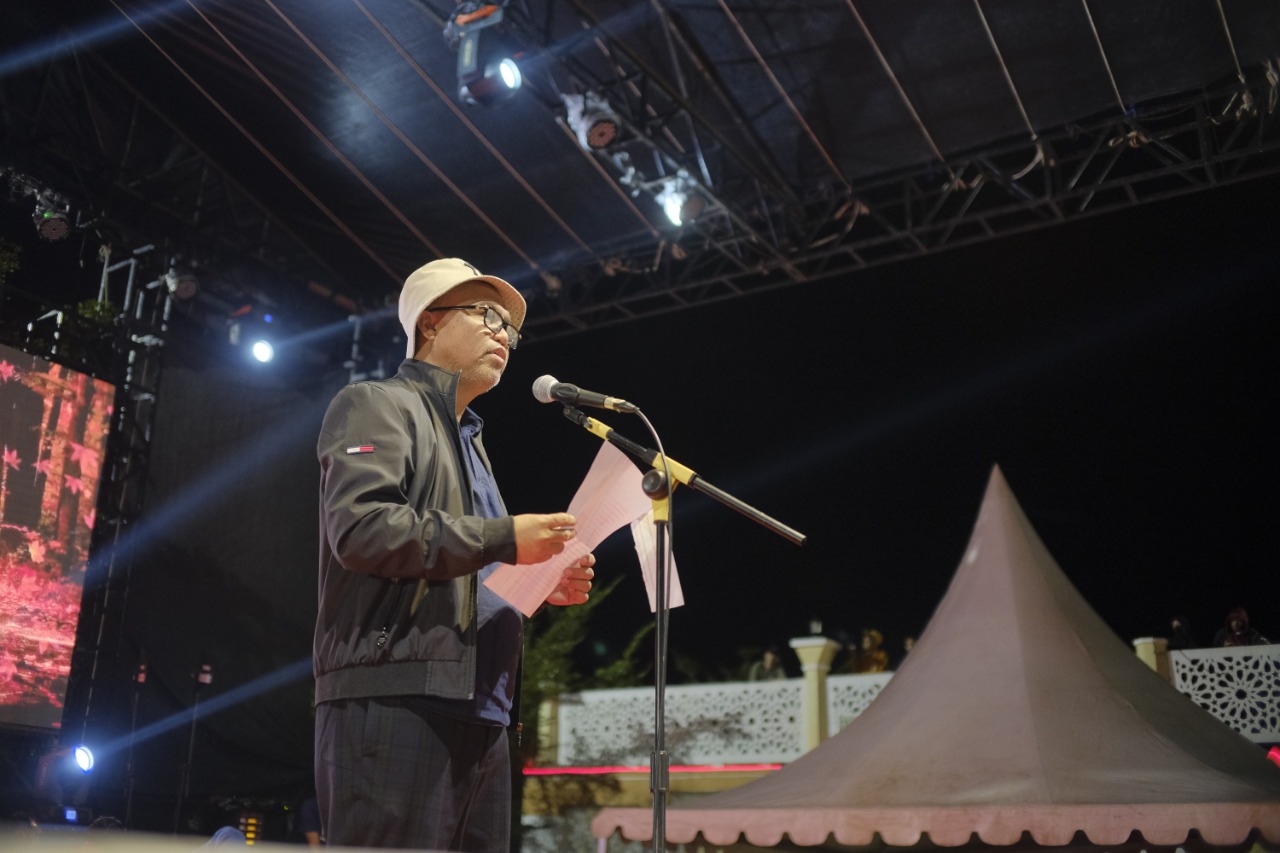 Bupati Luwu Timur, H. Budiman turut ambil bagian pada kesempatan ini dengan membacakan puisi karya W.S Rendra berjudul Makna Sebuah Titipan, diiringi gesekan biola yang merdu.