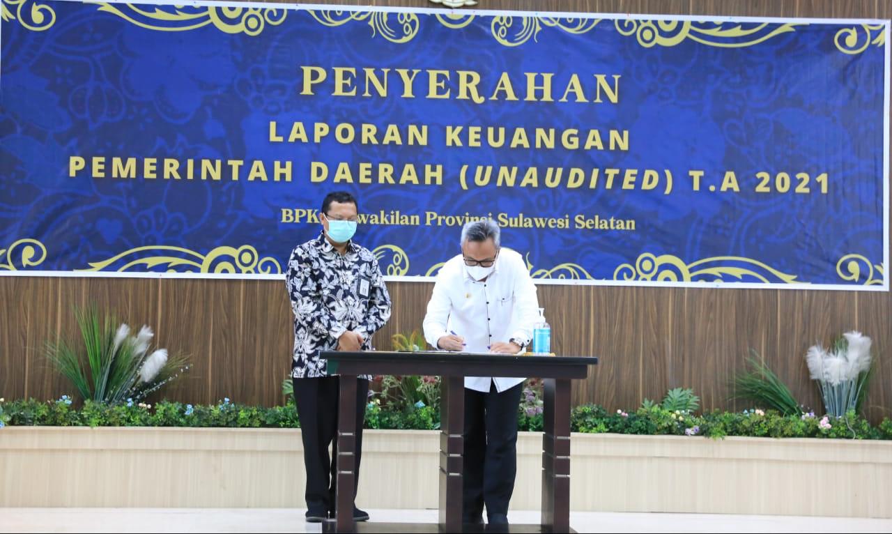 Laporan keuangan UNAUDITED Tahun 2021 Pemerintah Kabupaten Lutim ini diserahkan langsung oleh Bupati Lutim kepada Kepala perwakilan BPK Provinsi Sulsel, Paula Henry Simatupang, yang diawali dengan penandatanganan berita acara serah terima.