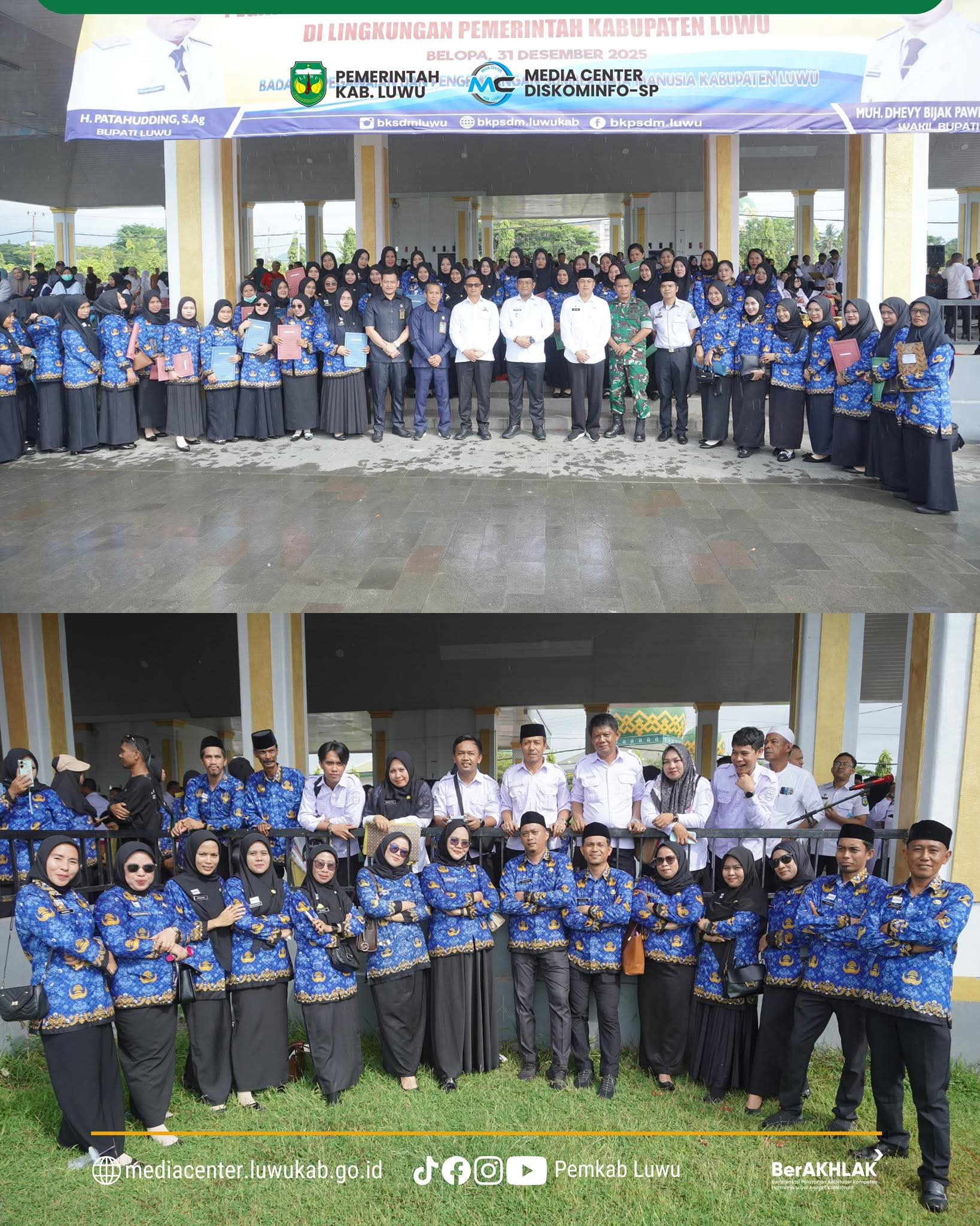 Luwu, Chaneltumur.com – Penyerahan Surat Keputusan (SK) Pengangkatan Pegawai Pemerintah dengan Perjanjian Kerja (PPPK) Paruh Waktu di lingkungan Pemerintah Kabupaten Luwu berlangsung khidmat meski diguyur hujan. SK tersebut diserahkan langsung oleh Bupati Luwu, Patahudding, di Lapangan Andi Djemma Belopa, Rabu (31/12/2025).