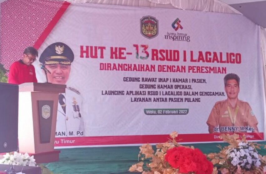 Bupati Luwu Timur, H. Budiman dalam sambutannya mengucapkan selamat ulang tahun ke-13 RSUD I Lagaligo. Ia berharap RSUD I Lagaligo senantiasa berkomitmen memberikan pelayanan yang lebih baik, berakhlak serta dilandasi dengan ketulusan dan keihlasan.