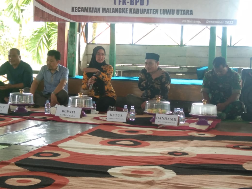 Bupati Luwu Utara, Indah Putri Indriani, membuka musyawara kerja, FK-BPD kecamatan malangke timur, “Indah”,merasa senang kegiatan ini dapat terselenggara di setiap kecamatan.