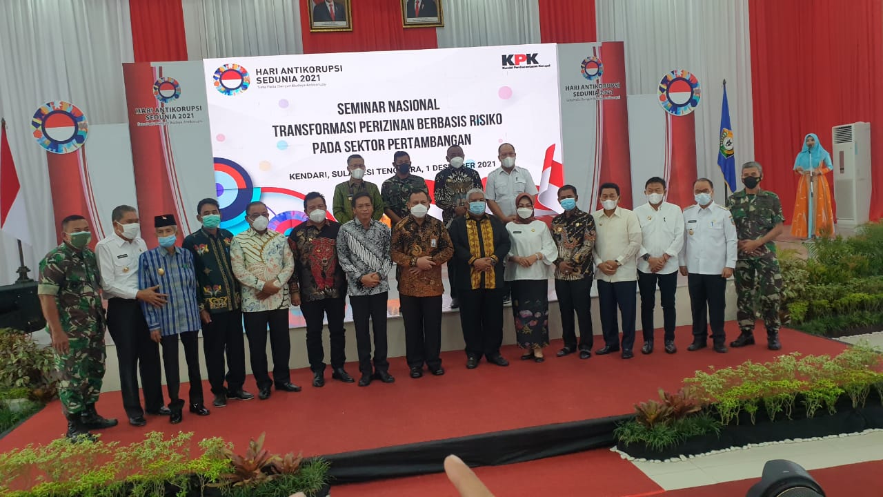 Peringatan Hakordia luring untuk wilayah Sulawesi Tenggara (Sultra) di pusatkan di Aula Bahteramas Kantor Gubernur, yang dirangkaikan dengan seminar “Transformasi Perizinan Berbasis Resiko Dalam Sektor Pertambangan”.