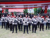 Polwan Bersenjata Lengkap Ikuti Upacara Penurunan Bendera Merah Putih