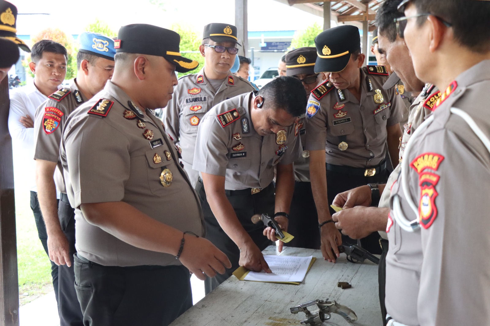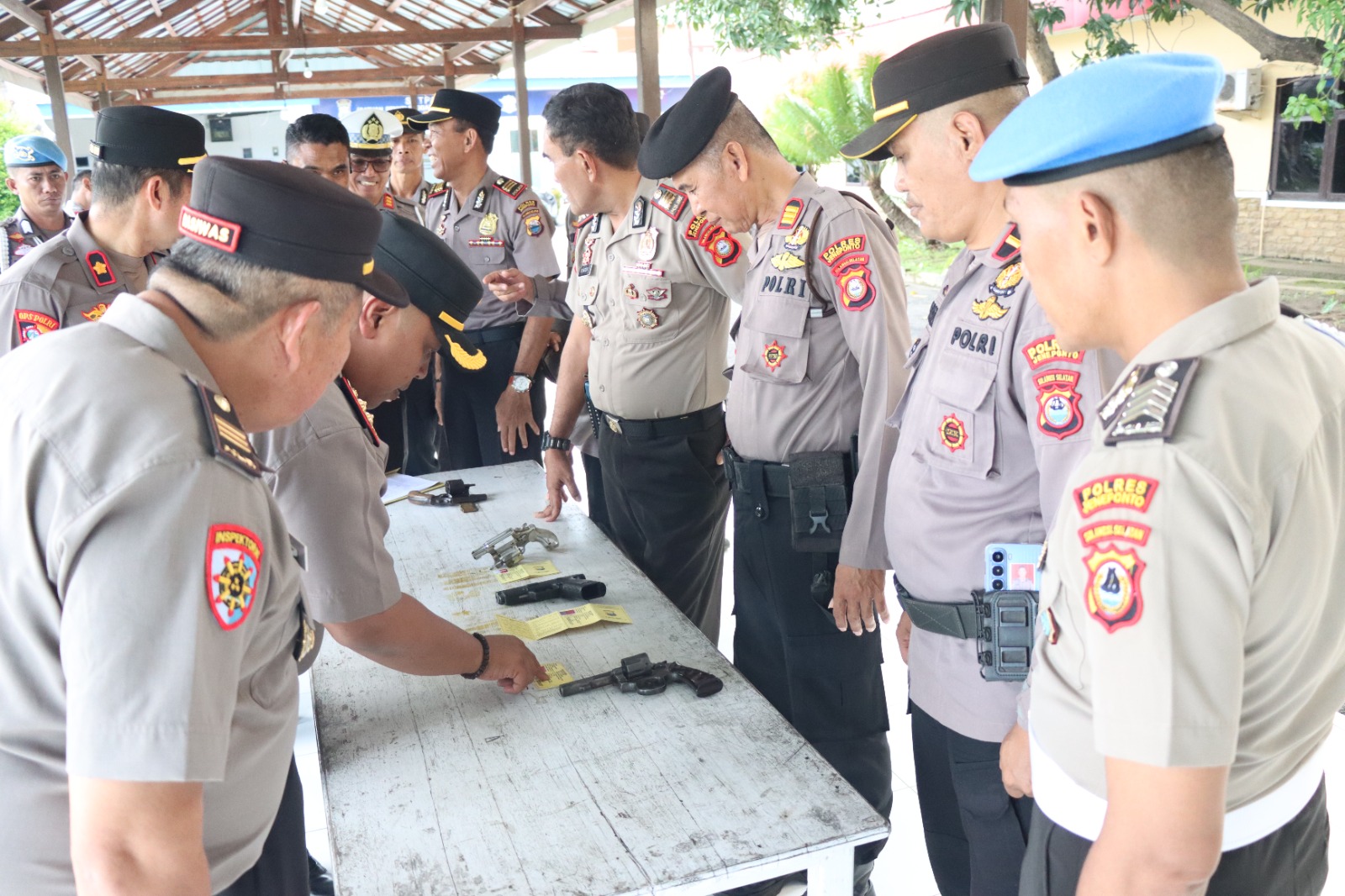 Pemeriksaan berlangsung ketat dan tertutup. Seluruh sampel urine personel yang diperiksa, untuk pemeriksaan senjata api, Kapolres memastikan bahwa setiap personel yang membawa senpi harus bertanggung jawab penuh atas penggunaan dan perawatannya.