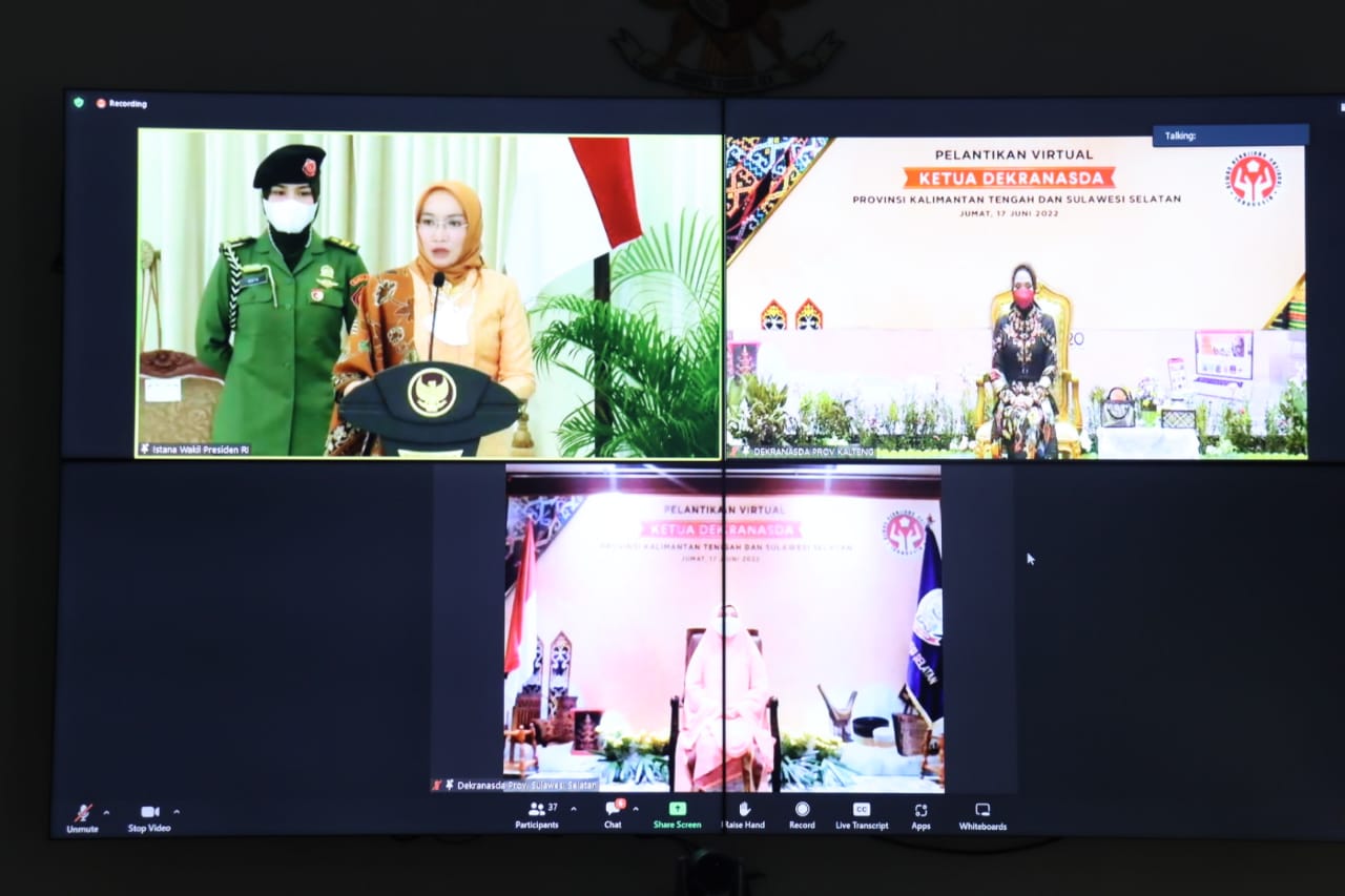 Ketua Umum Dekranas, Hj. Wury Ma’ruf Amin dalam arahannya mengucapkan selamat dan sukses kepada Ivo Sugianto Sabran sebagai ketua Dekranasda Provinsi Kalimantan Tengah dan Naoemi Octarina sebagai ketua Dekranasda Provinsi Sulsel.