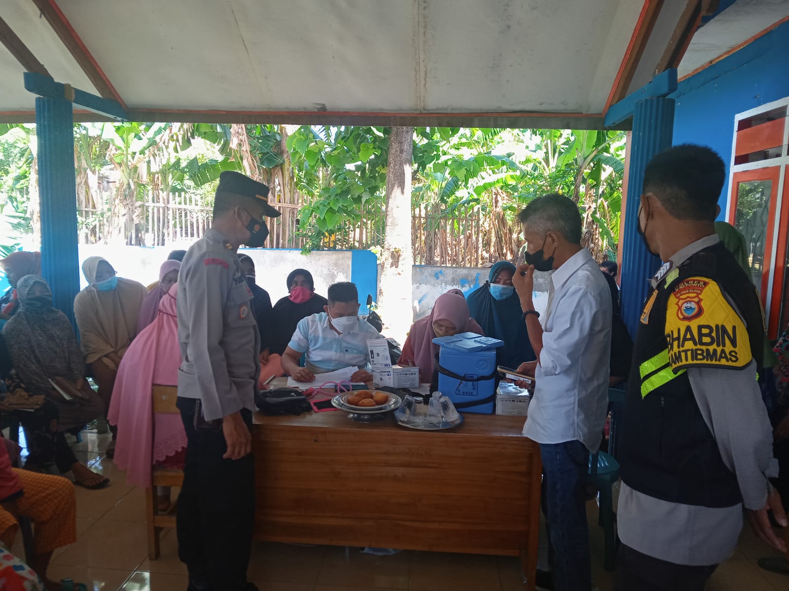 Jeneponto,Chaneltimur.Com – Berlokasi di kantor desa bontorappo kec tarowang, kapolsek batang bersama jajaran diantaranya kanit samapta Aiptu Arif Amir, kanit binmas Aiptu Hamka,SH, kasium Aiptu Haskari dan bhabinkamtibmas Bripka Syamsu Alam melaksanakan pengamanan dan monitoring kegiatan pelaksanaan vaksinasi covid-19, Senin 28/2/2022.