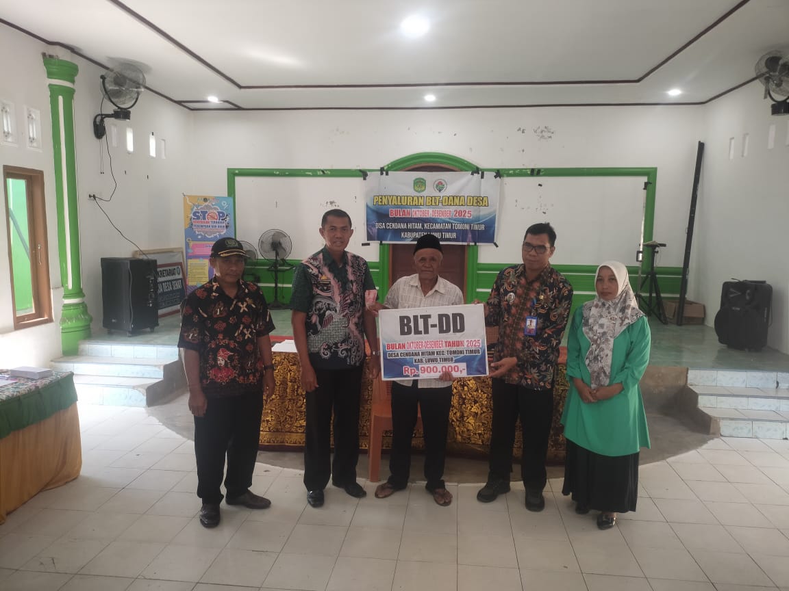 LUWU TIMUR, Chaneltimur.com – Pemerintah Desa Cendana Hitam menyalurkan Bantuan Langsung Tunai Dana Desa (BLT DD) Tahap IV untuk periode Oktober, November, dan Desember 2025, Kamis (18/12/2025). Kegiatan penyaluran berlangsung di Aula Desa Cendana Hitam, Kecamatan Tomoni Timur.
