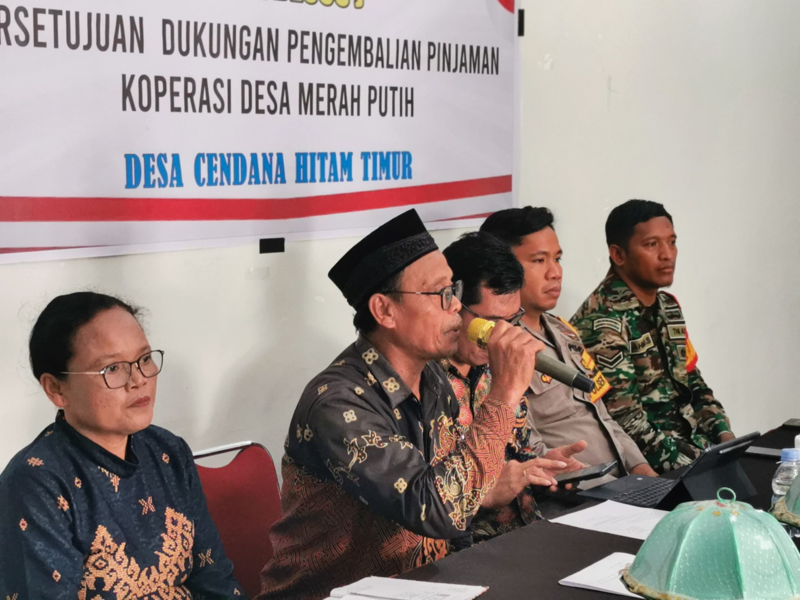 Sementara itu, Pj Kepala Desa Cendana Hitam Timur, Duma, menyatakan komitmennya untuk mendukung pelaksanaan koperasi. Ia memastikan pemerintah desa siap memfasilitasi kebutuhan KDMP, termasuk penyediaan sarana perkantoran dan pelaksanaan ketentuan terkait persetujuan dukungan pengembalian pinjaman sebagaimana tertuang dalam Surat Edaran Menteri Desa PDT RI Nomor 8 Tahun 2025.