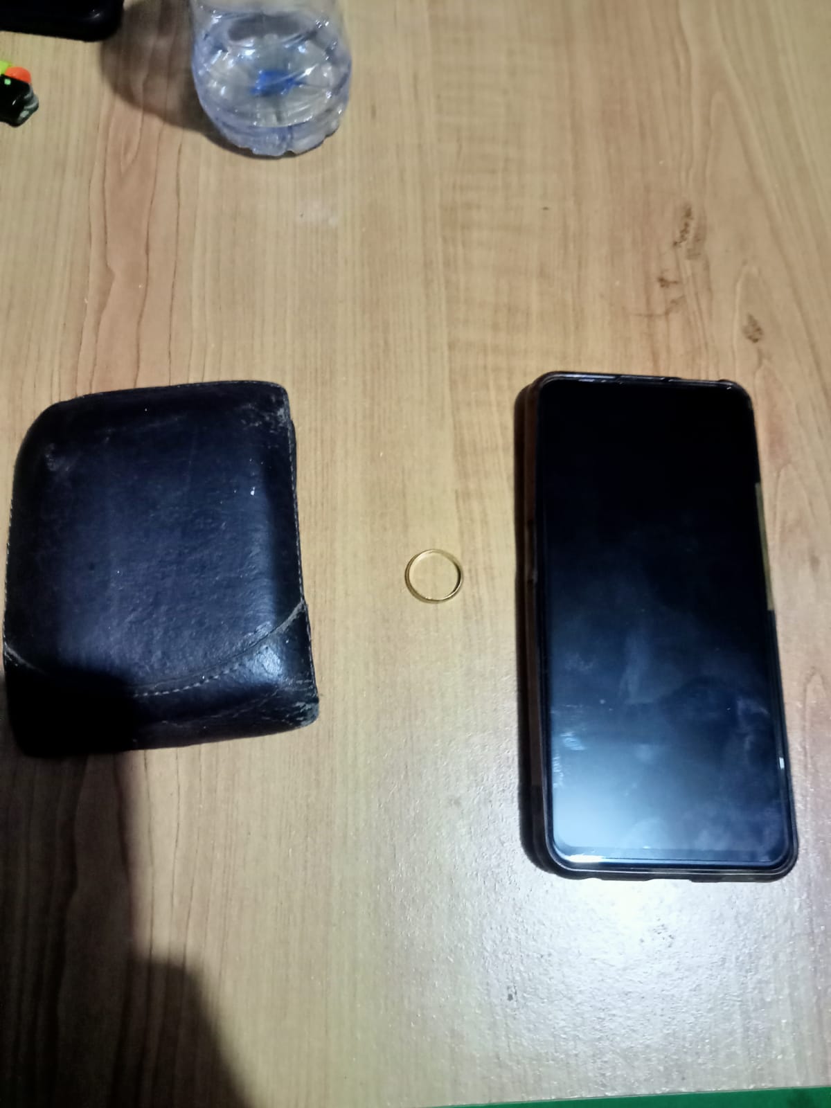 Anggota polres jeneponto menemukan sebagai barang bukti yaitu Satu buah cincin emas berat 1 ( satu) gram, Satu hp merek Vivo warna hitam, Satu buah dompet warna coklat.