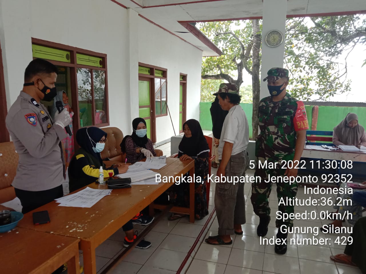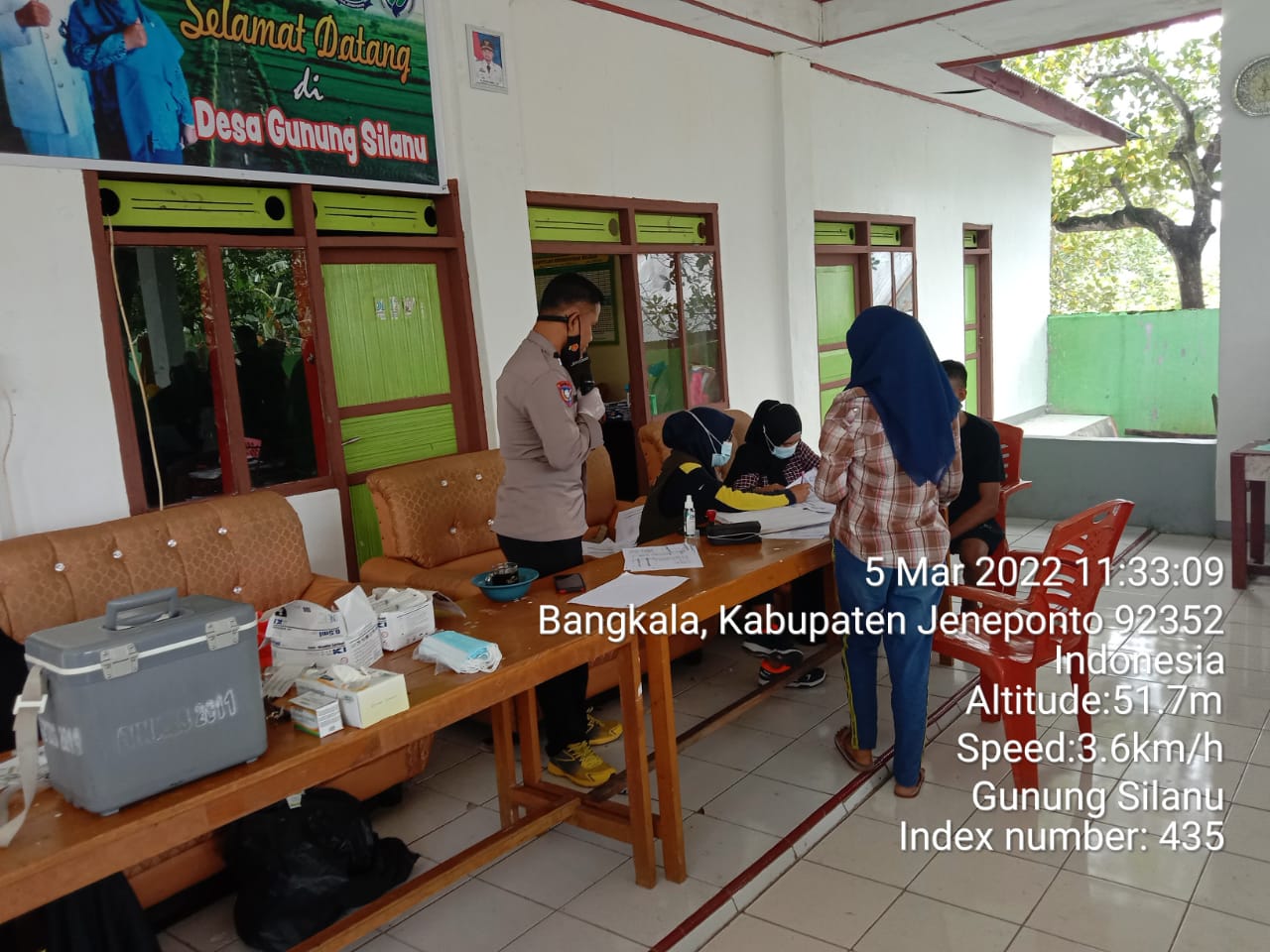 Jeneponto,Chaneltimur.Com – Bertempat di kantor desa gunung silanu kec bangkala barat, bhabinkantibmas dan babinsa melaksanakan kegiatan pendampingan pemberian vaksinasi baik dosis 1,2 dan 3 (booster) dari nakes puskesmas kapita.Sabtu 5/3/2022