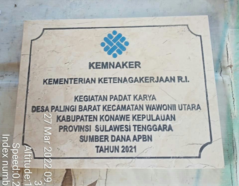 Badi Farman Menambahkan, Dalam Pelaksanan pekerjaan yang di kucurkan oleh Kementrian Ketenagakerjaan RI yang berada di Desa Palingi Barat Kab. Konawe Kepulaun yang menyerap Anggaran kurang lebih 100.000.000.00 (Seratus Juta Rupiah), tidak ada realisasi sama sekali dan ini saya menduga cacat dalam hukum.