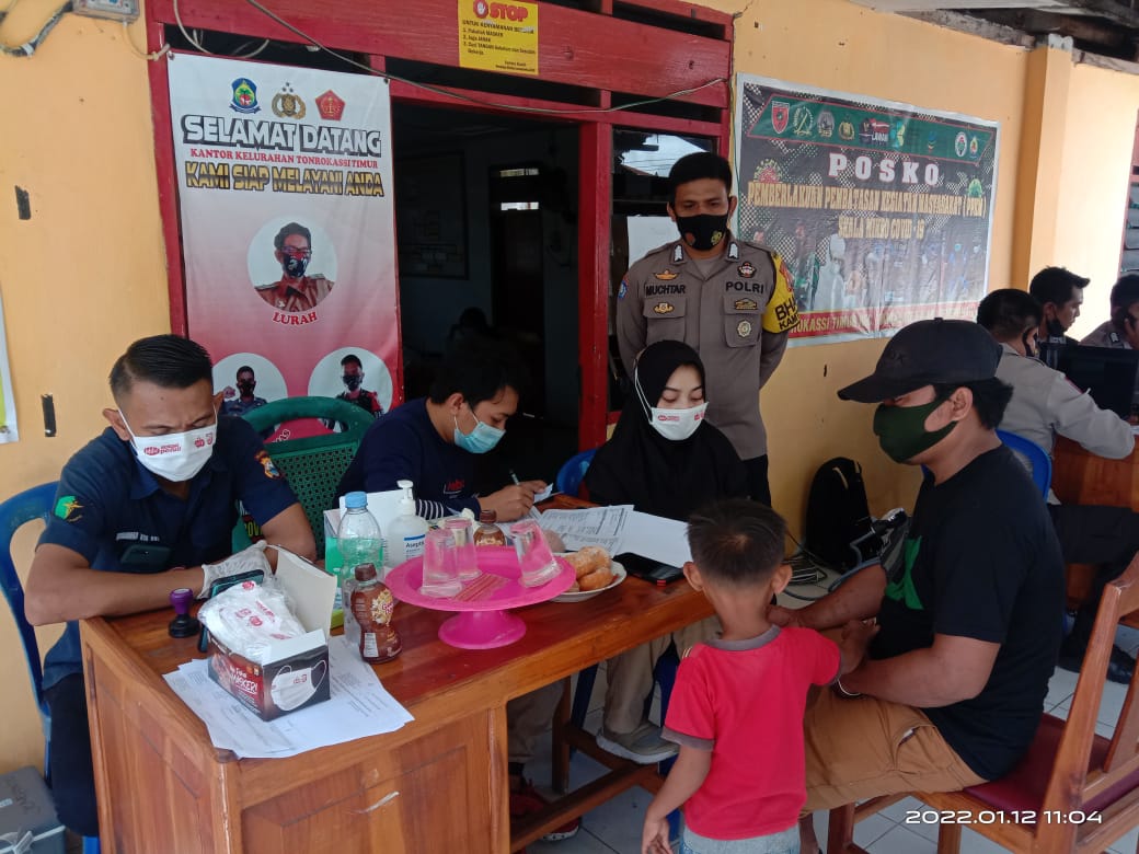 Bhabinkamtibmas BRIPKA MUHTAR bersama babisa Babinsa SERTU HASSMIR melakukan pengawasan kegiatan pemberian vaksinasi covid-19 kepada warga sekitar.