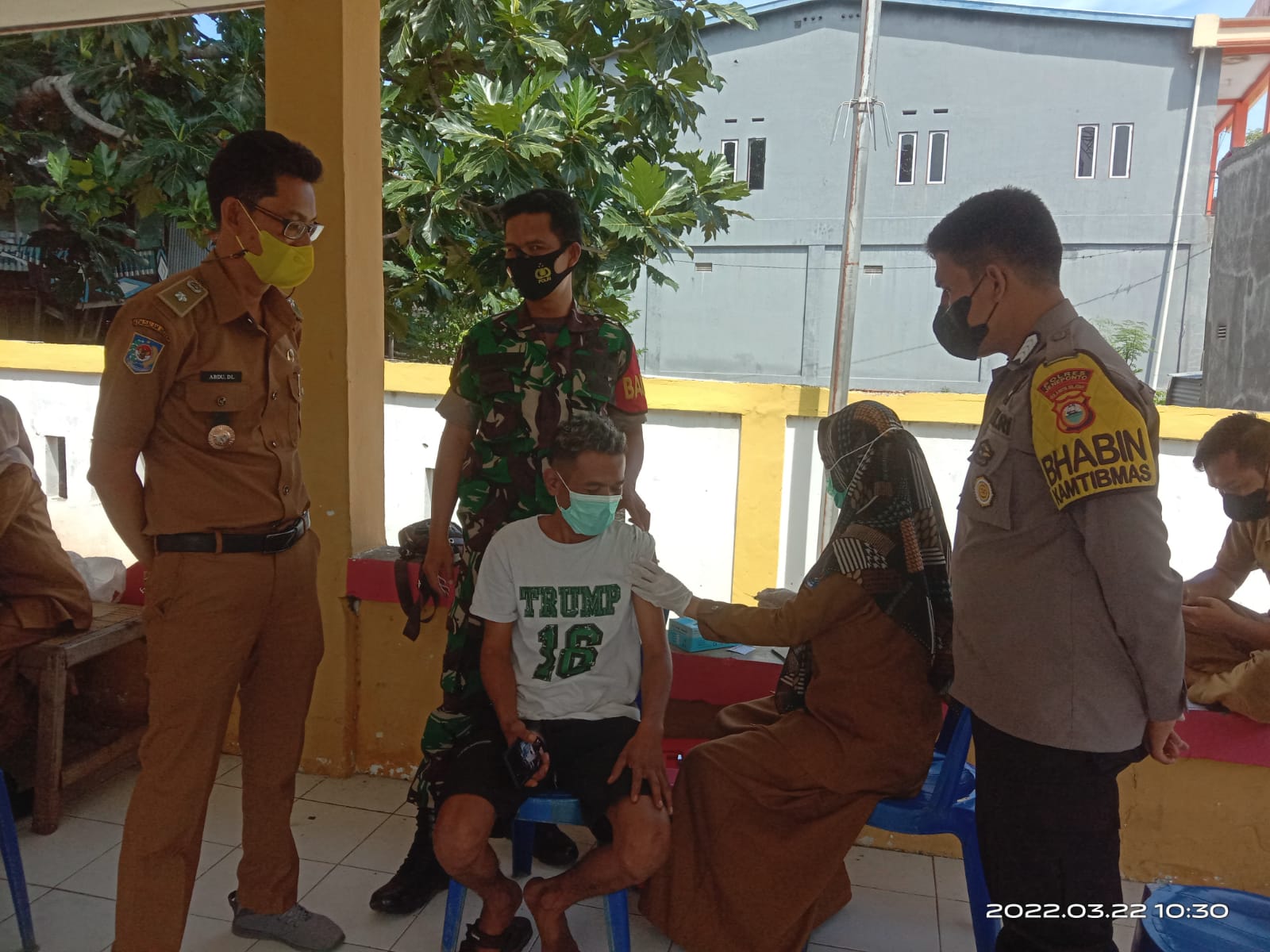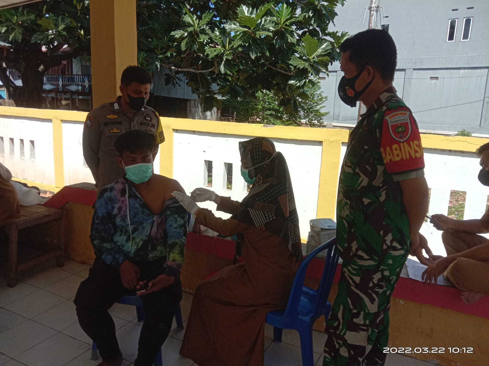 Jeneponto,Chaneltimur.Com – Bertempat di kantor kelurahan tonrokassi timur kecamatan tamalatea kabupaten jeneponto,bhabinkamtibmas Bripka Muhtar bersama babinsa Sertu Hamsir memantau kegiatan pemberian aksinasi covid-19 bagi warga masyarakat oleh tim vaaksinatir dari nakes puskesmas tamalatea, Selasa 22/3/2022.